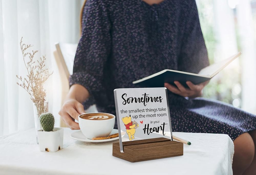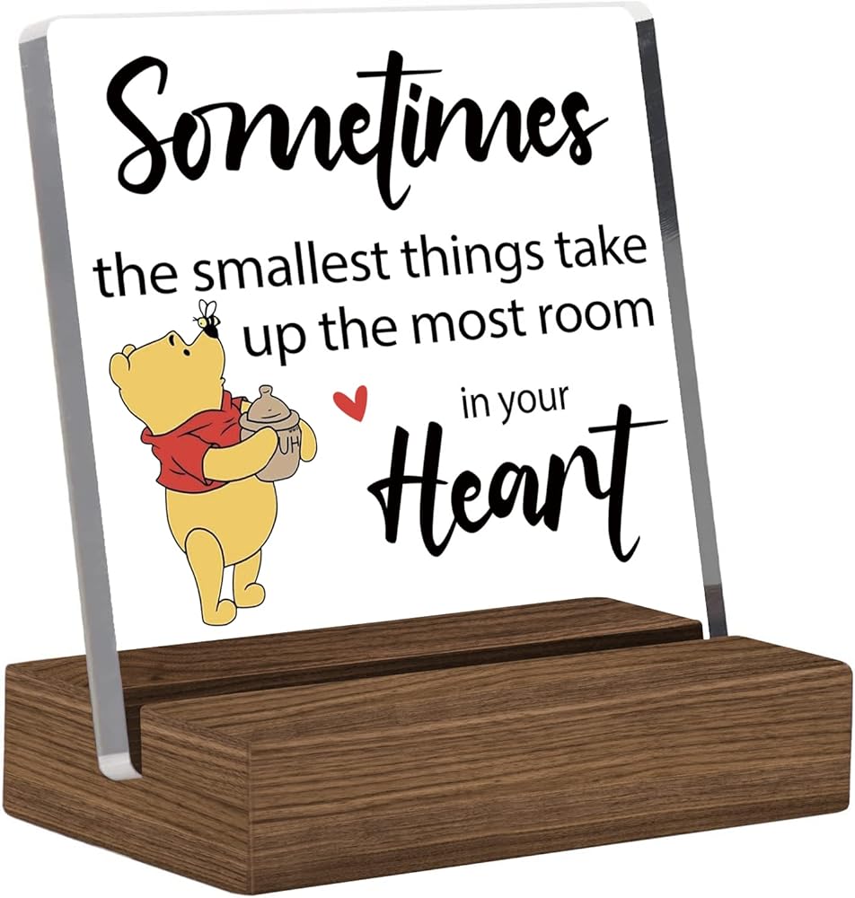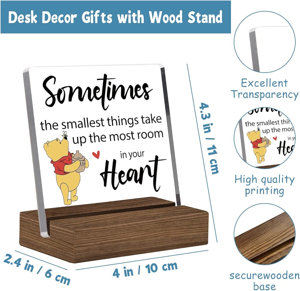 لافتة ديكور مكتبية شفافة مع حامل خشبي، ملهمة ومضحكة من ويني ذا بوه، علامة ديكور لوحة إيجابية مثالية لغرفة النوم المنزلية أو هدية عيد ميلاد المكتب لأفراد عائلة الأصدقاء