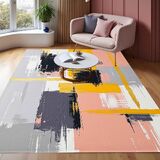 【MATERIAL】100% Polyester vibrant color modern abstract rugs for living room bedroom diningroom home office kitchen laundry hallway conference room. Foldable & machine washable, lightweight ultra soft wool contemporary aesthetic area rug.