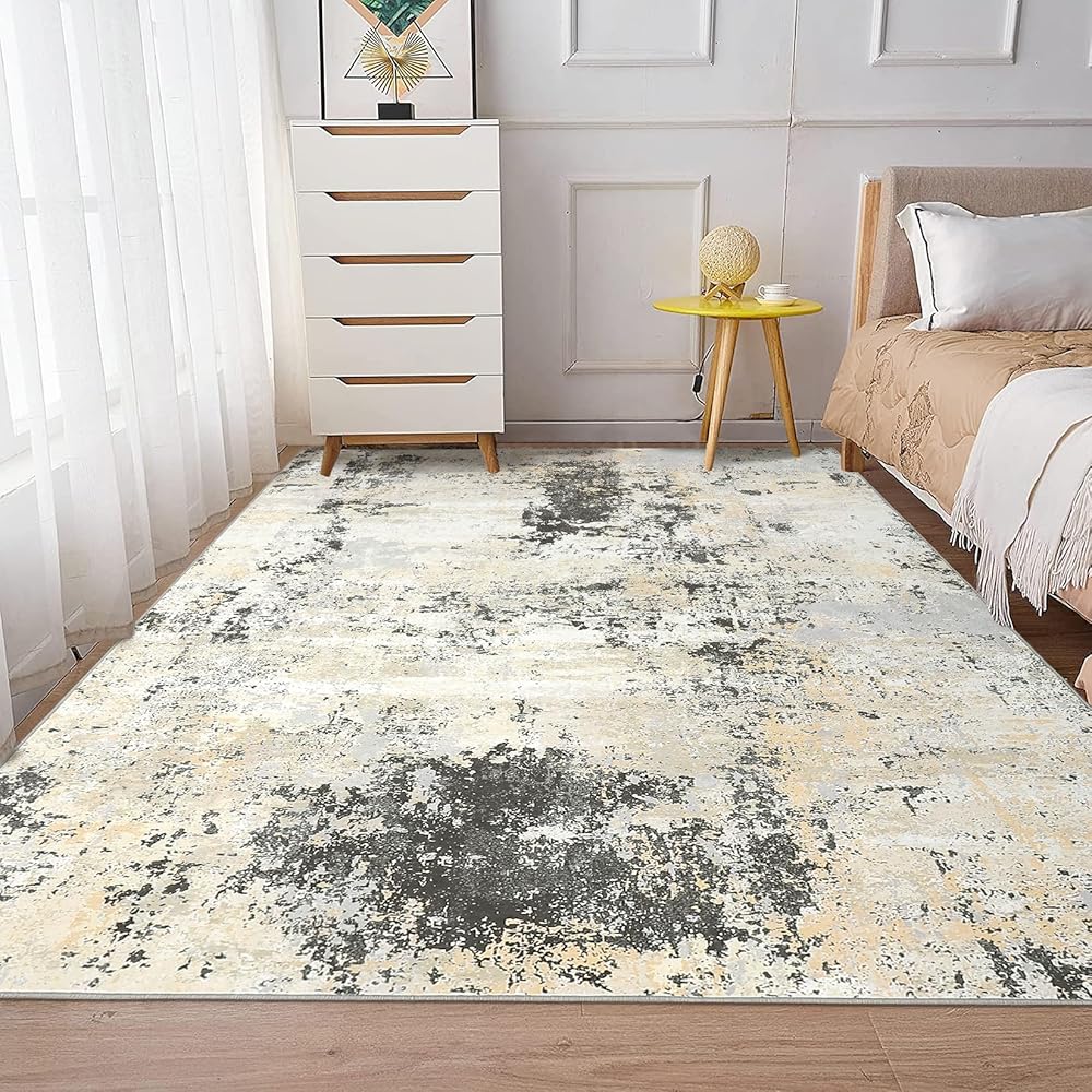 سجادة تجريدية حديثة: سجادة تجريدية حديثة تضفي جاذبية جديدة على الإعدادات المعاصرة. استخدم هذه السجادة لإضافة طبقة من الدفء مستوحاة من الطبيعة إلى الأرضية الباردة أو لإضفاء الحيوية على الغرفة الباهتة. يُظهر تصميمه الريفي المرقط لمسة تجريدية خطية من الألوان الوردية والأصفر لإضفاء أجواء حية.