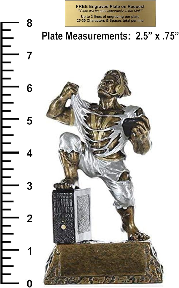 تفاصيل الكأس واللوحة: بطول 16.5 سم؛ 3 خطوط من النقش؛ 30 حرفًا / مساحة في كل سطر للاحتفال بمهاراتهم في الألعاب