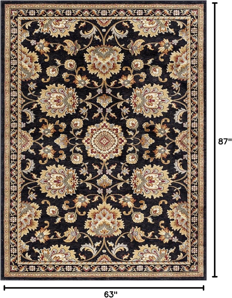 المواصفات: مقاس 2'3'' x 7'3''، ارتفاع الوبر 0.39 بوصة، الألوان الثانوية تشمل البيج والذهبي