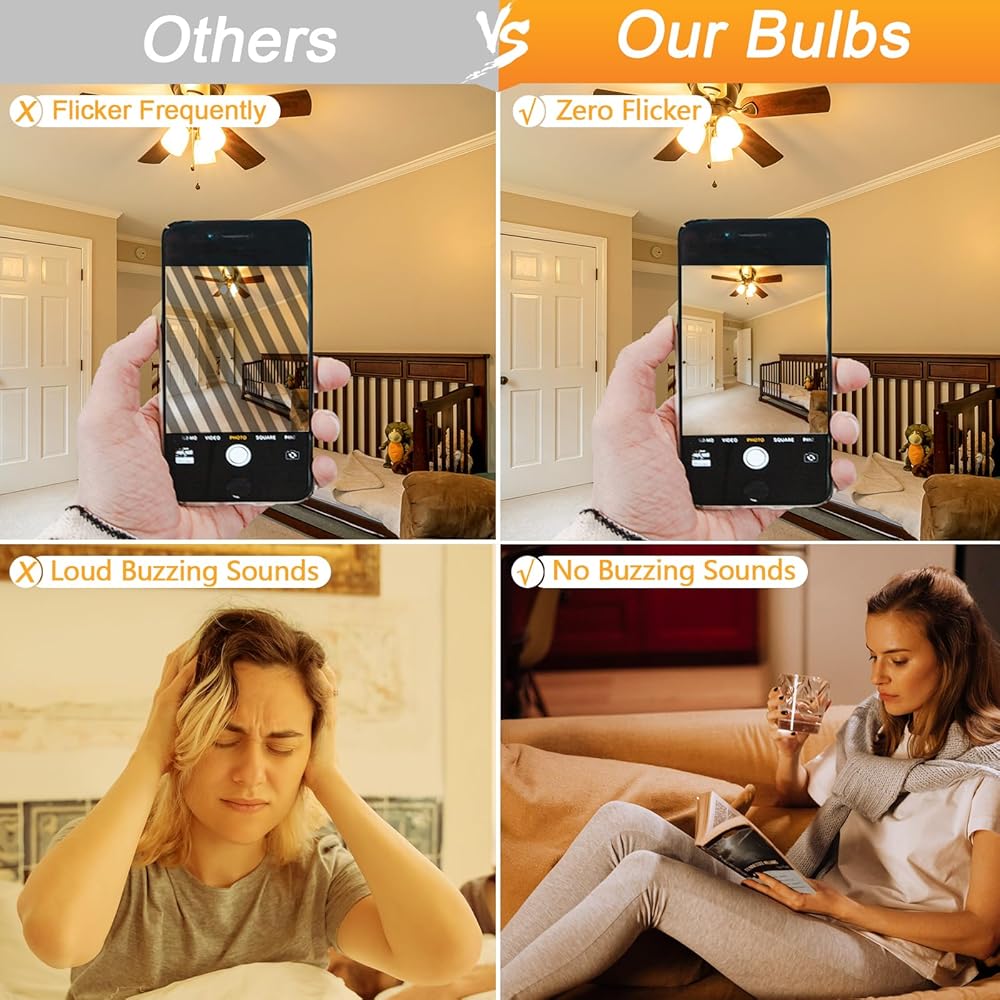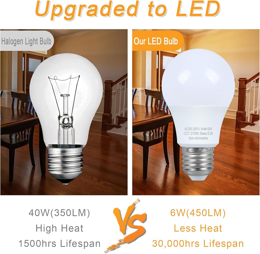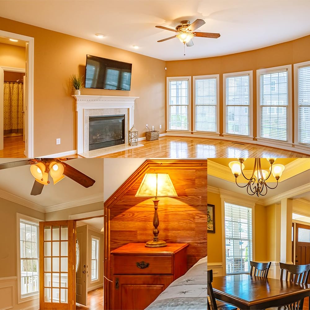 تطبيق واسع: مصابيح LED قياسية A19 بقاعدة متوسطة E26، مثالية للاستخدام في تركيبات الحمام أو مصابيح مروحة السقف أو مصابيح الطاولة أو مصابيح الأرضية أو المصابيح المعلقة أو أي تركيبات إضاءة بمقبس E26.