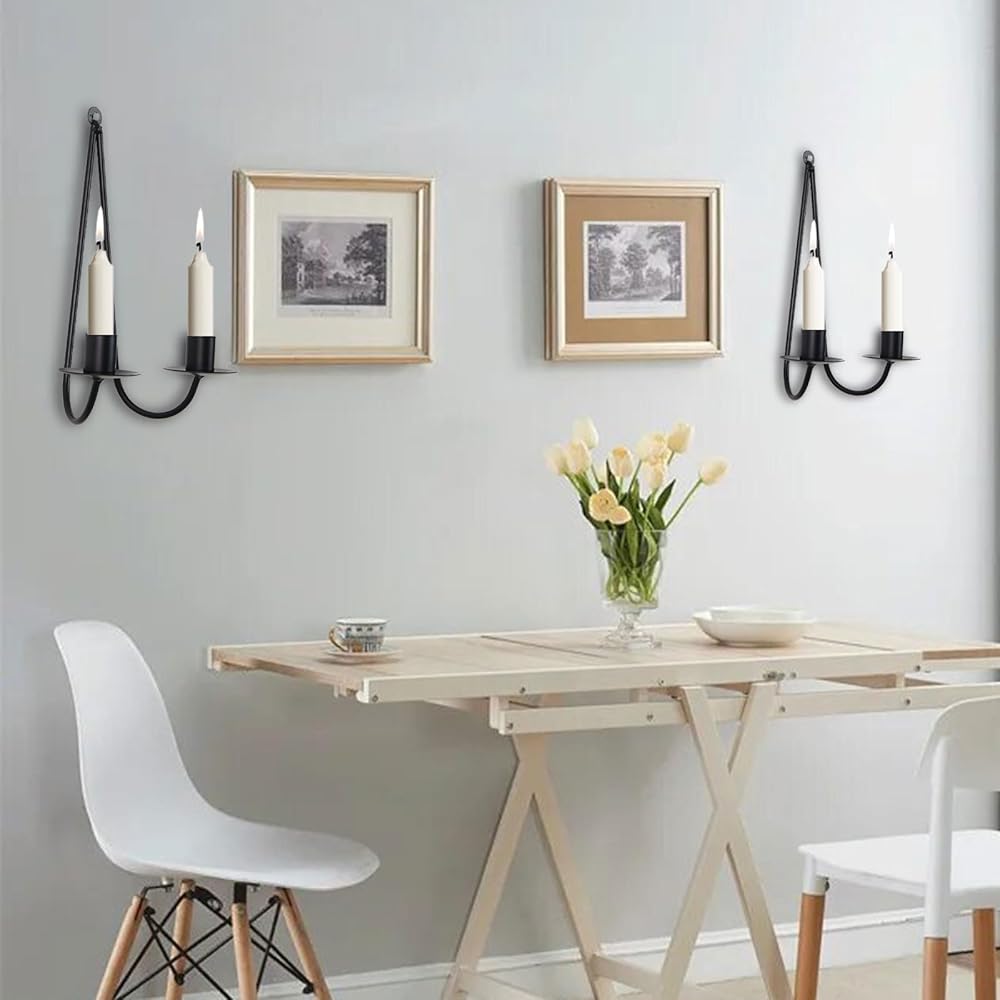 • 【عبوة من قطعتين من حامل شموع الحائط المعدني】شمعدان الحائط هذا مصنوع من معدن عالي الجودة، مع سطح طلاء غير لامع، ليس من السهل أن يبهت أو يتشوه. الحجم 12.4 ارتفاع × 8.8 طول × 3.7 عرض
