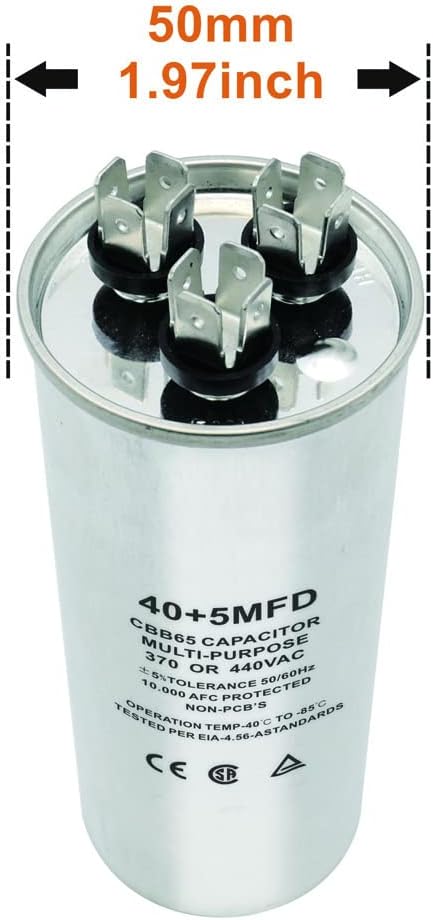 • PREMIUM QUALITY: Capacitor is 1.97" in diameter by 4.92" in height so please check this measurement carefully before purchasing. It is made from durable material and well-tested, Safety rated: 10,000 AFC