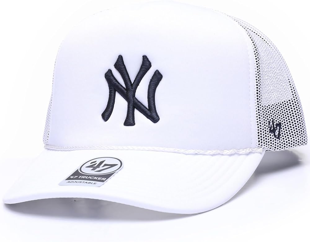 The '47 Trucker has a comfortable mid-crown, a curved visor, and an adjustable plastic snapback. The front has a raised embroidery logo. Made from interlock polyester foam and soft mesh.