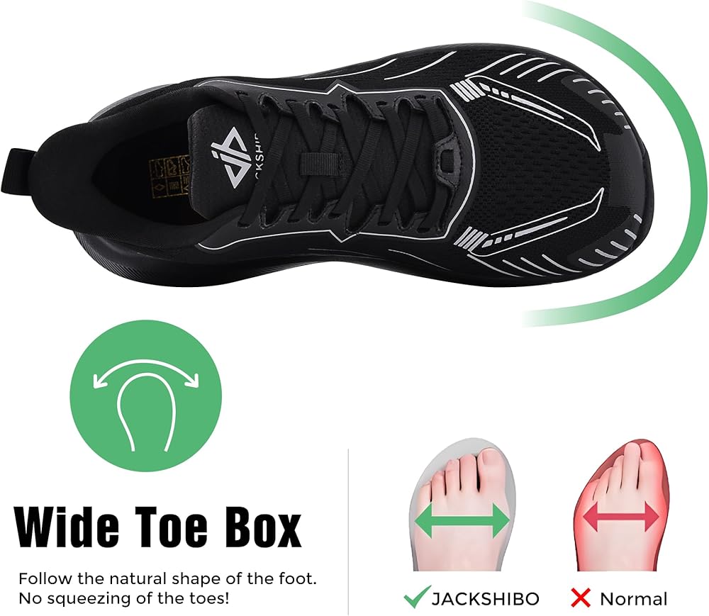 المناسبة: أحذية JACKSHIBO ذات المقدمة العريضة رائعة للتدفق، والممر، والمدرب، والجولف، والجري على الطرق الخفيفة، والرياضة، والتنس، وصالة الألعاب الرياضية، واللياقة البدنية، والركض، والتمرين، والتدريب المتقاطع، والتمارين الرياضية، والركض، والمشي حول المنزل، والتسوق أو العمل في الفناء، أو المشي المعتدل، أو الحديقة أو التسكع في المنزل، أو الأورام أو أصابع القدم المطرقة، أو التهاب اللفافة الأخمصية، أو الملابس اليومية الكاجوال للقدم المصابة.
