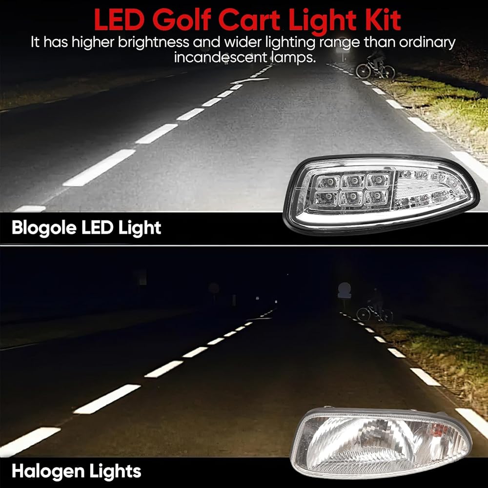 【إضاءة LED معززة】- مجموعة مصابيح EZGO RXV الخاصة بنا مجهزة بمصابيح LED ساطعة توفر عمر خدمة طويل. تتميز مصابيح LED هذه بأنها أكثر سطوعًا وأكثر كفاءة في استخدام الطاقة مقارنة بمصابيح الهالوجين OEM، مما يضمن سلامتك في ظروف الإضاءة المنخفضة.