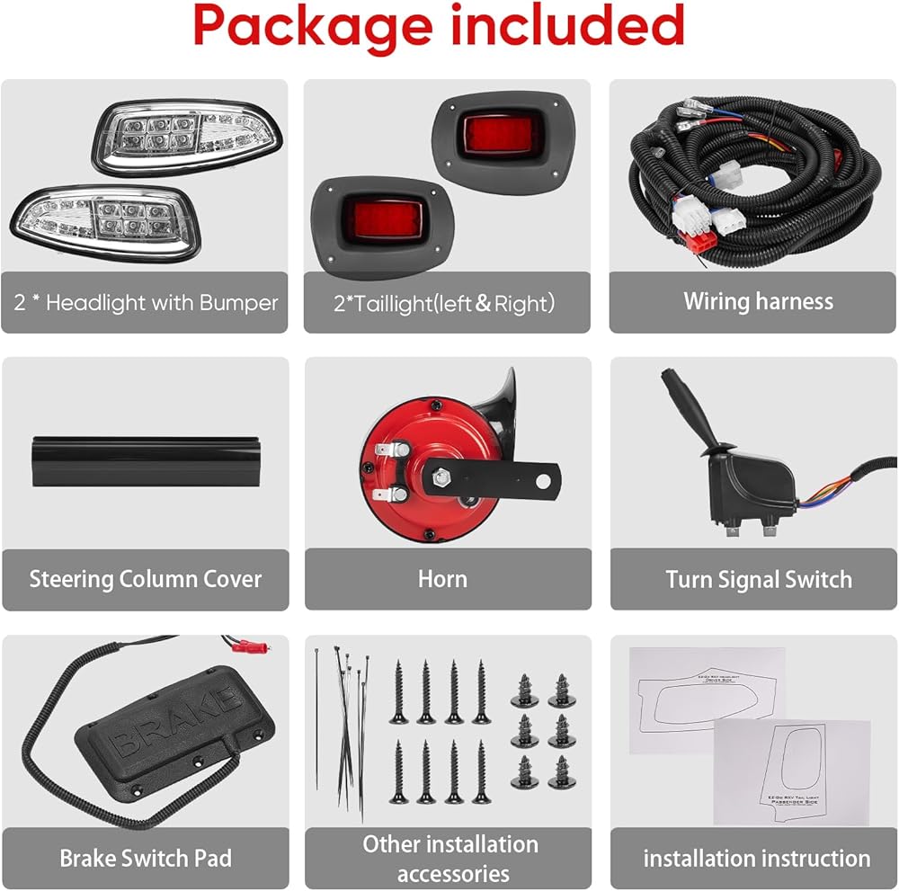 【تطبيق متعدد الاستخدامات】- تم تصميم مجموعة الإضاءة الفاخرة لعربة الجولف من Blogole لموديلات الغاز والكهرباء EZGO RXV 2008-2015، والتي تتميز بمصابيح إشارة الانعطاف، وأضواء الفرامل، وأضواء الخطر، والقرن. عزز المظهر العام لعربة الجولف الخاصة بك وعزز السلامة والرؤية أثناء الرحلات الليلية.