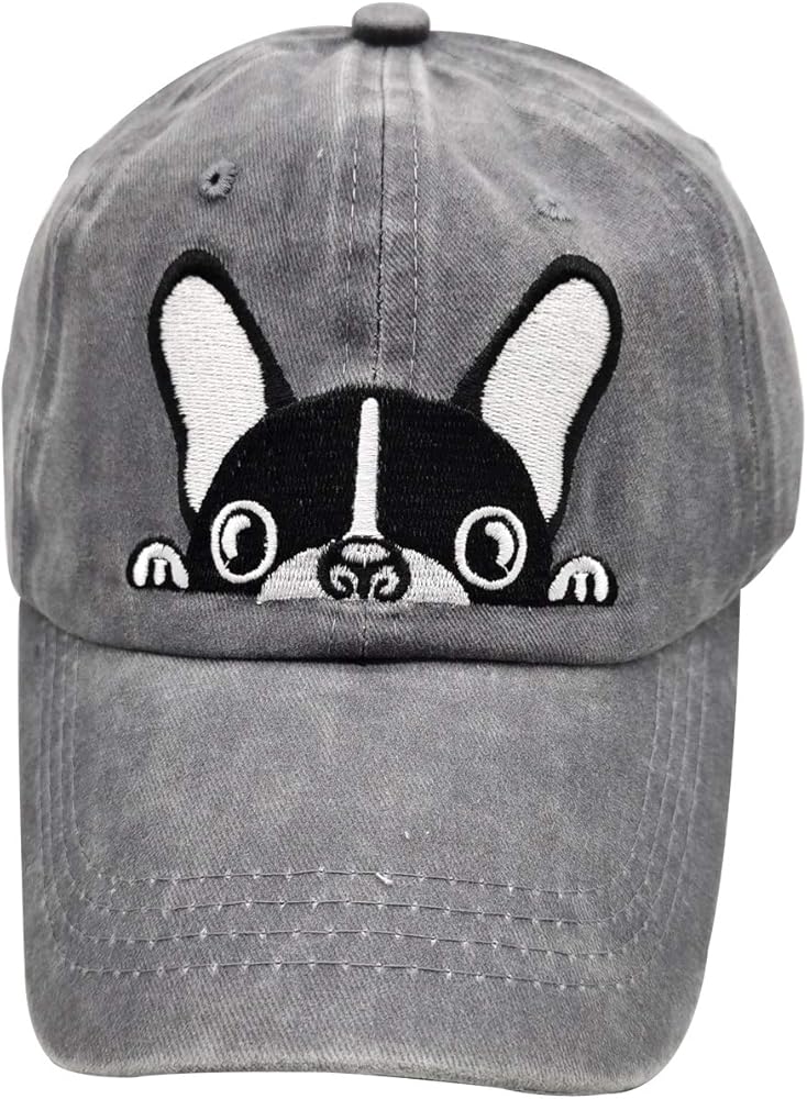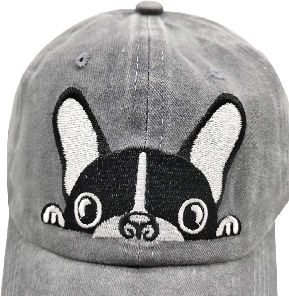 Waldeal unisex adjustable cute Bostong Terrier pug dog memorial washed cotton low profile baseball cap denim dad hats, unstructured, with professionally embroidery logo, they have a clean fit, and with proper poise will allow access to country clubs (AKC )and sailboats without so much as a passing glance. The custom made washed twill cotton caps is an indispensable part of every pet's owner wardrobe. Hats dismensions: Hat Height: 9cm/3.54", Hat Along: 7cm/2.76", Head Circumference:55-60cm/21.6"-23.6". Great dog lover gift for dog mom, dog dad, gifts for your family, best friend, co-worker, mama/papa, grandma/grandpa, mother and father...