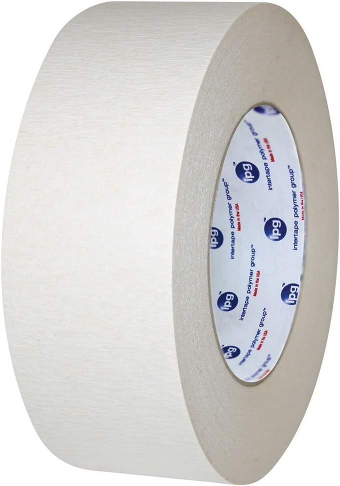 A beige, crepe paper tape coated on both sides with an aggressive, pressure-sensitive natural rubber adhesive