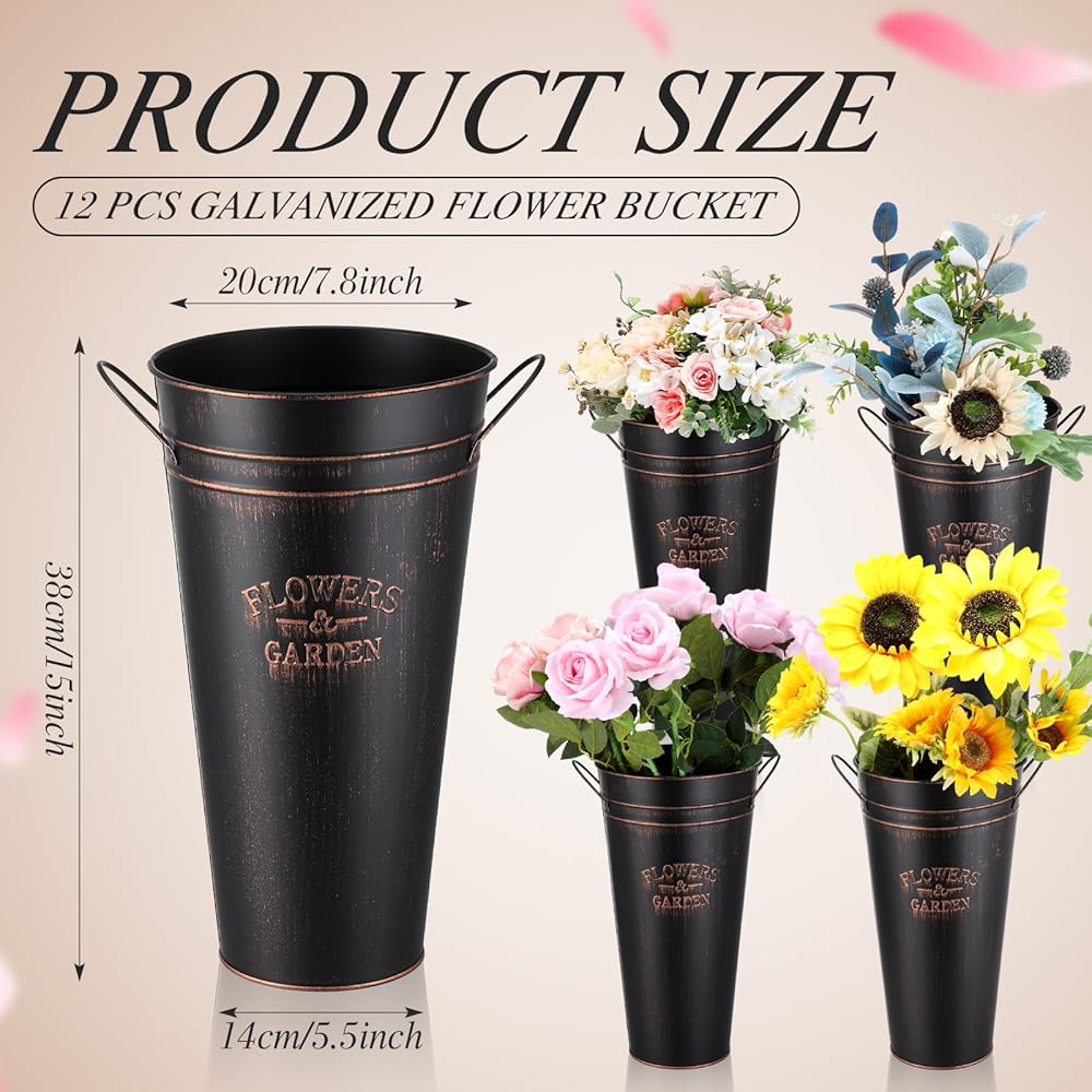 • Galvanized Flower Bucket Bulk: 12 pieces of vintage white galvanized vases, suitable for indoor and outdoor use and combine them with artificial or real flowers or plants to bring exquisite style to your home, garden or party; The abundant amount of tall galvanized buckets is enough to meet your decoration needs in flower bar for housewarming party, decoration for bridal shower, wine cabinet for wedding and other places