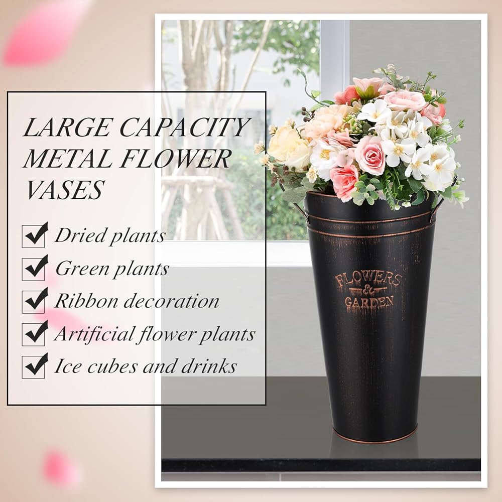 • Sturdy and Waterproof: metal vases are made from heavy duty galvanized steel with double lug handles and each large flower container measures about 7.87 inches/ 20 cm in top diameter, about 5.5 inches/ 14 cm in bottom diameter and about 15 inches/ 38 cm high, galvanized flower buckets are made of thick galvanized metal with waterproof coating, so they can hold water without leaking, anti rust, thick and durable and will not be deformed after long term use, and can use for many times