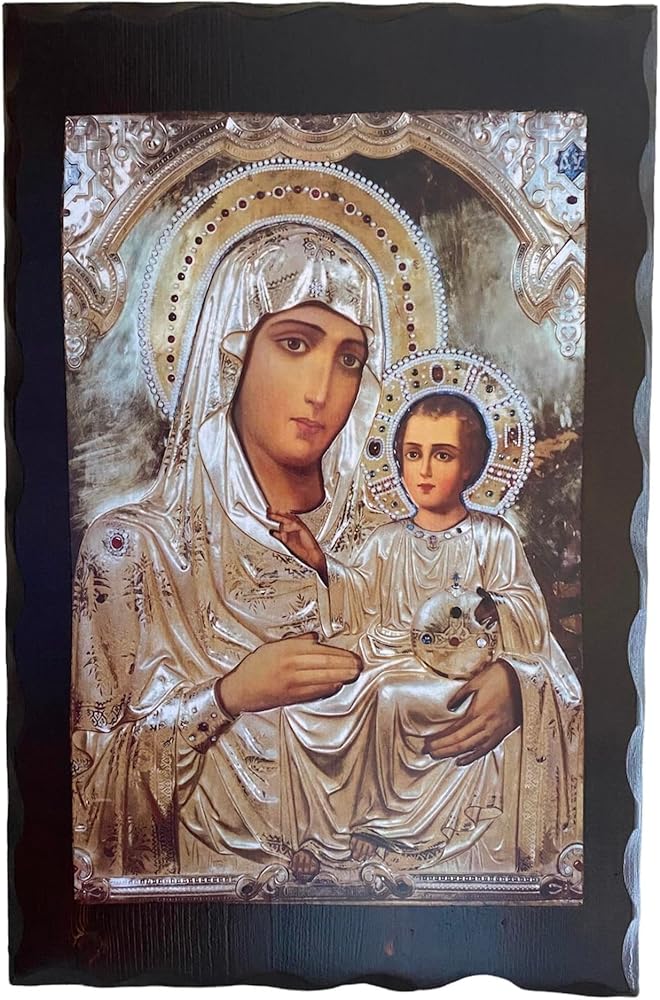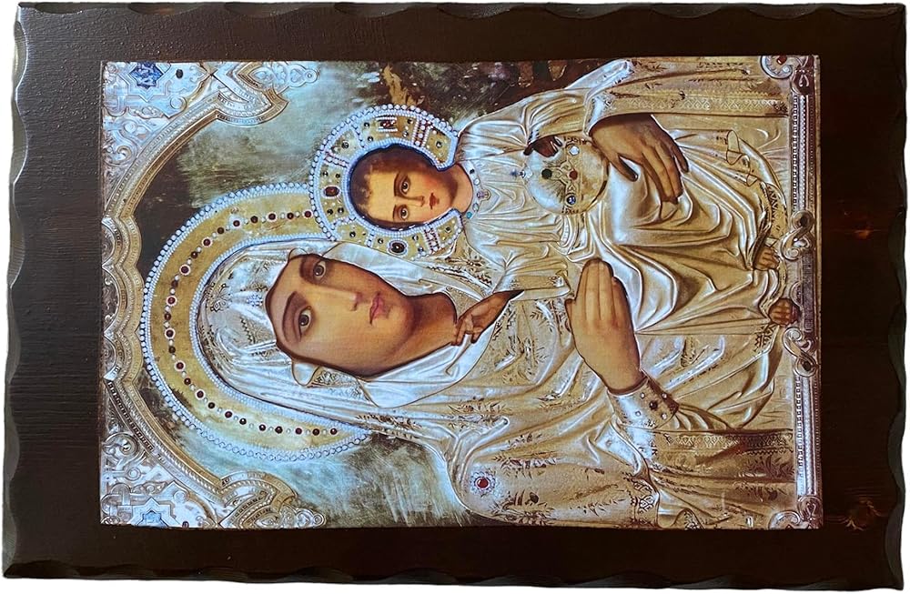 أيقونة خشبية صلبة أرثوذكسية مصنوعة يدويًا من خشب خيوس اليوناني المسيحي لوالدة الإله في القدس (46 × 30 سم أو 18 × 11.8 بوصة)، بني