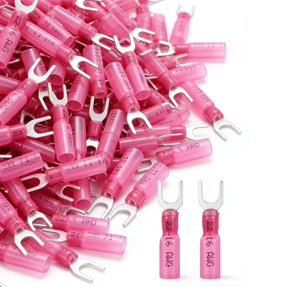 موصلات شوكة الانكماش الحراري: يحتوي الموصل على شوكة على شكل حرف U في أحد طرفيه، وهي مصممة لتناسب المسمار أو الترباس. يتيح التصميم الفريد لموصل الشوكة إمكانية ربطه وفصله بسهولة عن أطراف المسمار دون إزالة المسمار بالكامل، مما يوفر اتصالاً مريحًا وموثوقًا.