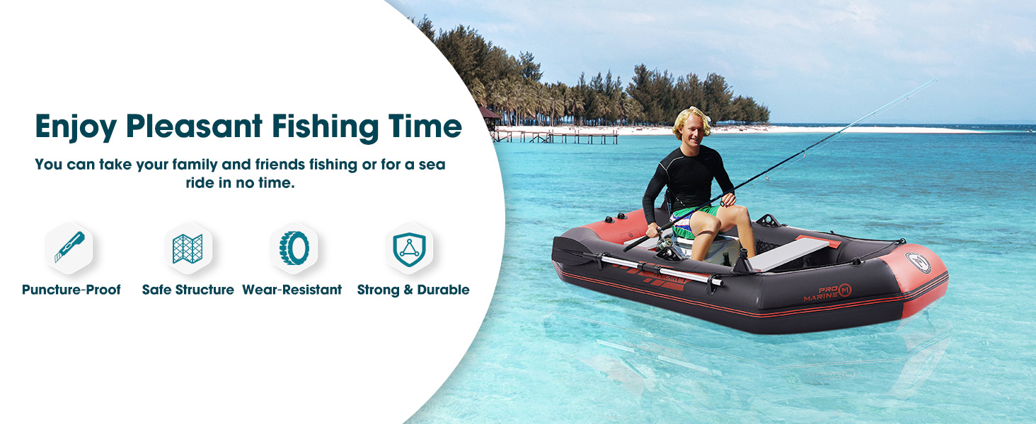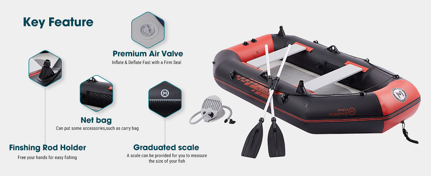 • Multifunctional Design- The scale mark on the inner body helps you measure the fish instantly;various holders on the boat for fishing rods, oars, cameras can free your hands and relax yourself.