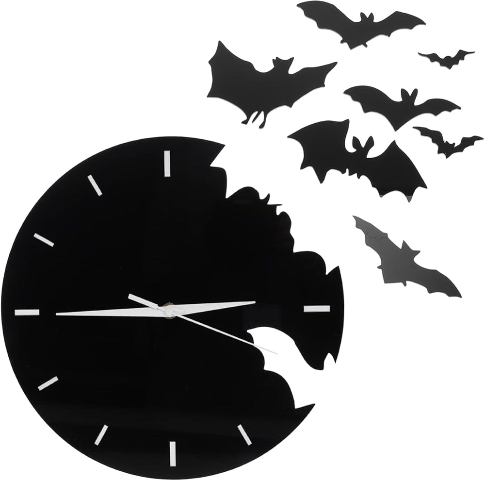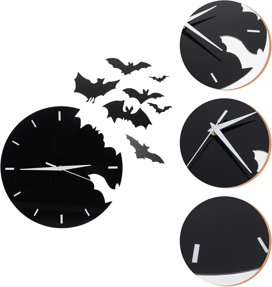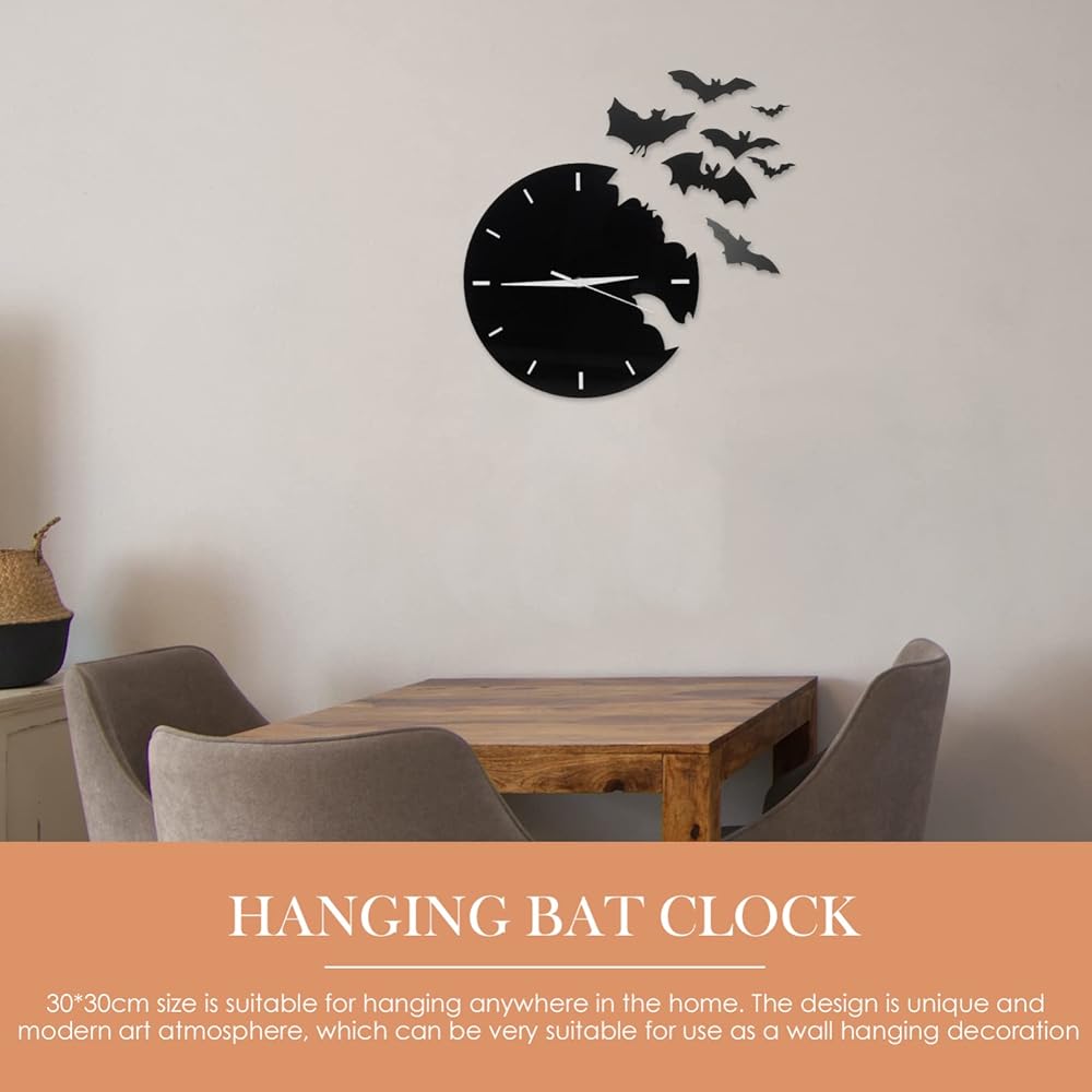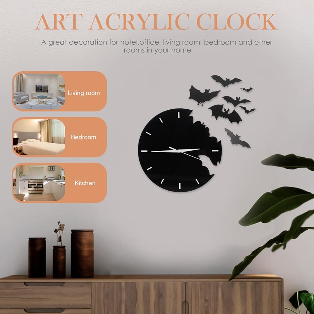 الخفافيش الاكريليك ساعة حائط الحيوانات الإبداعية معلقة ساعة حائط ثلاثية الأبعاد مخيف الخفافيش صورة ظلية صامتة غير موقوتة ساعة حائط الخفافيش طار جدار ديكور