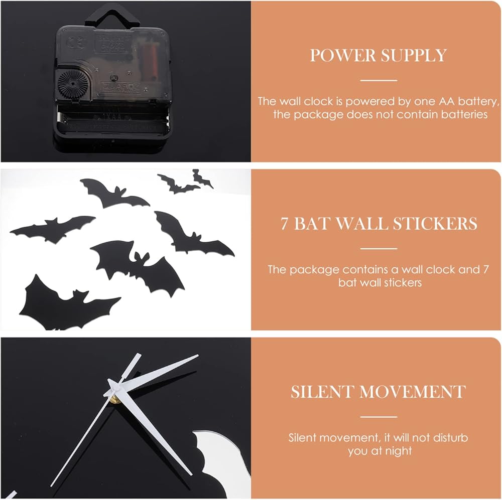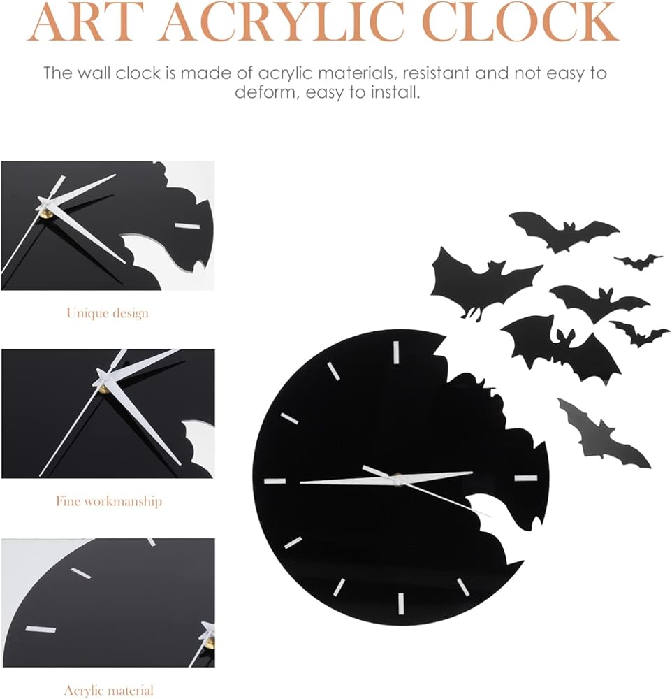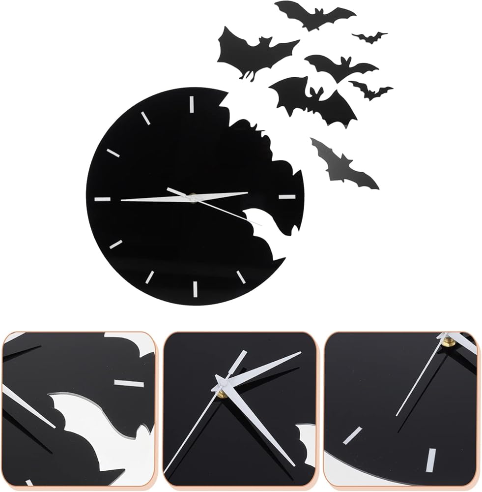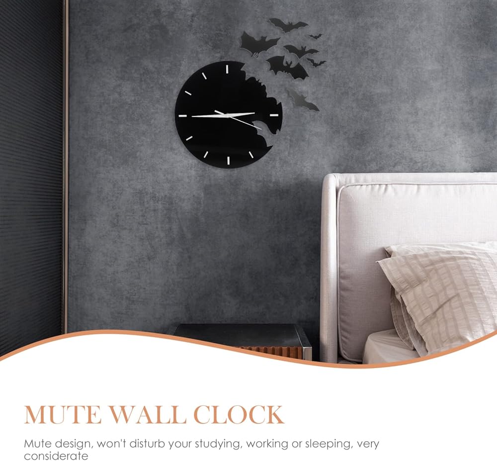 الخفافيش الاكريليك ساعة حائط الحيوانات الإبداعية معلقة ساعة حائط ثلاثية الأبعاد مخيف الخفافيش صورة ظلية صامتة غير موقوتة ساعة حائط الخفافيش طار جدار ديكور