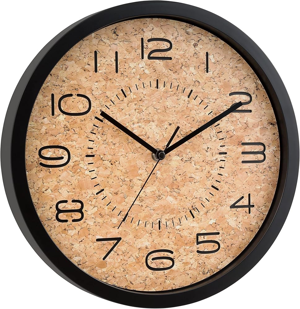 Add texture to your living space. Blending an easy to read laser cut Arabic numerals onto a rustic natural cork face, La Crosse Clock Company's Felix Cork Wall Clock is the perfect accent for home or office. High quality components include quiet sweeping hands with precise quartz movement. Glass lens protects from dust and debris and metal hands operate on a single AA battery.