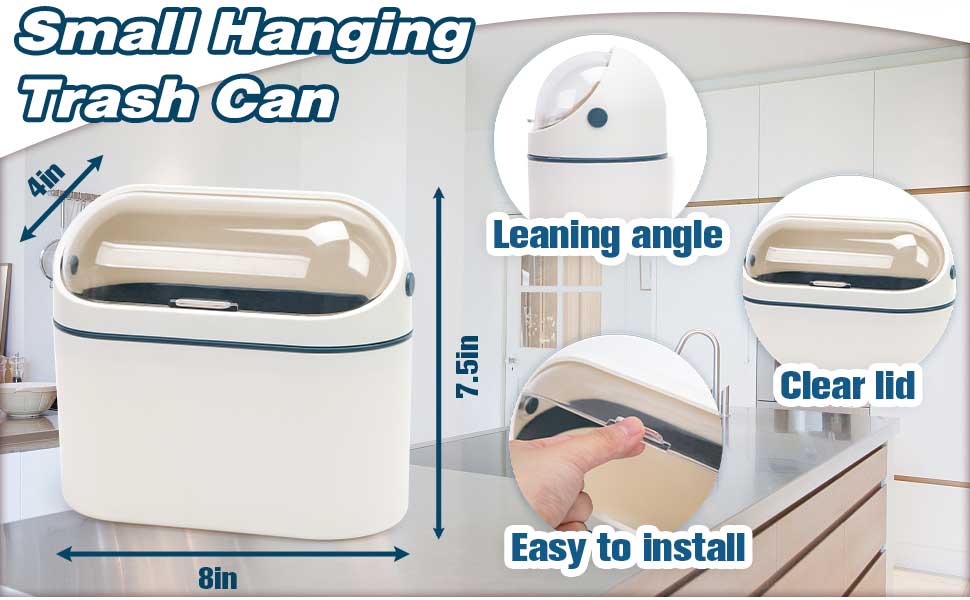 • سهلة الاستخدام - يمكنك فصل الجزء العلوي من سلة المهملات عن الجسم الرئيسي ووضع قطعة من كيس القمامة بداخلها. ثم يمكنك وضع سلة المهملات الصغيرة هذه على سطح المنضدة أو تركيب سلة المهملات هذه باستخدام الشريط اللاصق. كل مجموعة في 1 دقيقة. (يرجى ملاحظة: نظف السطح قبل لصق الشريط اللاصق)