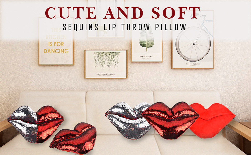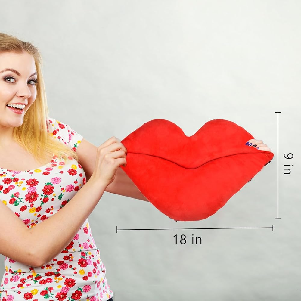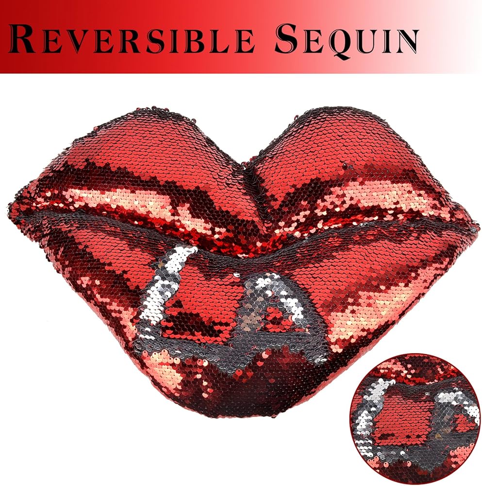 قطن مريح وترتر لامع - تتميز وسادة رمي الشفاه لدينا بغطاء قطيفة مصنوع من المخمل الفاخر ومملوء بسخاء بالحرير الناعم. كل وسادة مصنوعة يدويًا بدقة للحصول على أعلى جودة، ويبلغ مقاسها تقريبًا 45.72 سم × 22.86 سم.