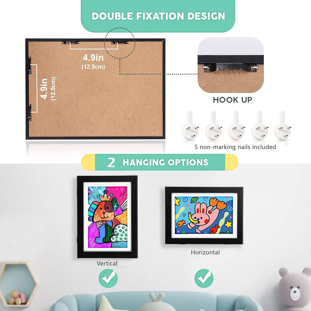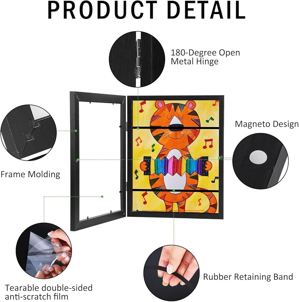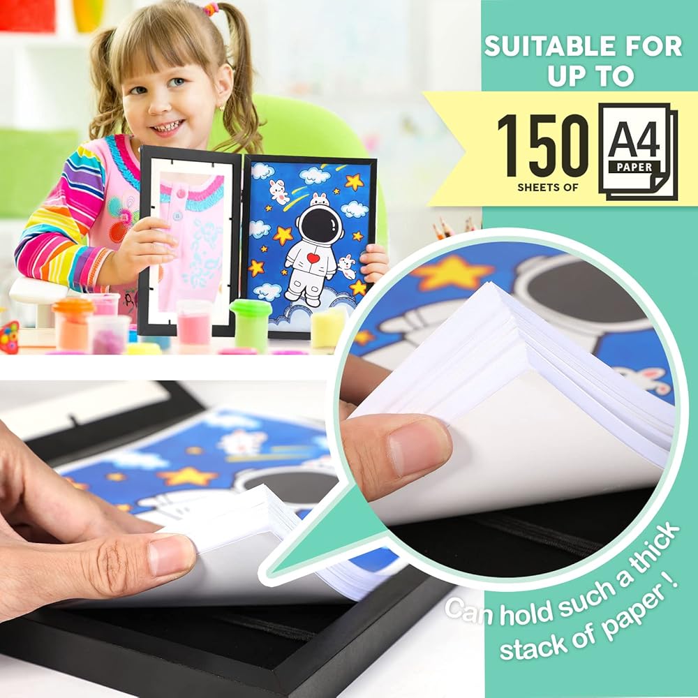 • 🖼️ مساحة تخزين مدمجة كبيرة: يمكن لهذه الإطارات الفنية تخزين ما يقرب من 50-150 قطعة فنية، مع حجم عرض ورق A4 مثالي، وألوان إطار مختلفة، مثالية لعرض أحدث أعمال الأطفال في رياض الأطفال/المدارس والصور الدوارة.
