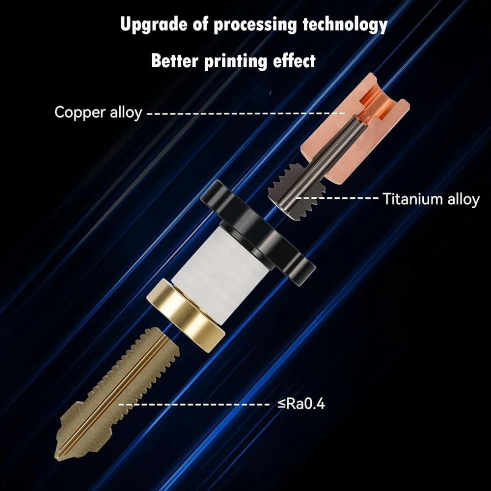 High-quality manufacturing technology and materials make the performance of the heat block kit even better. The heat break is made of titanium alloy and copper, and the wall thickness is extremely thin 0.25mm, which has excellent thermal insulation performance. Copper alloy nozzle Nozzle inner wall roughness ≤ Ra0.4, feeding more smoothly