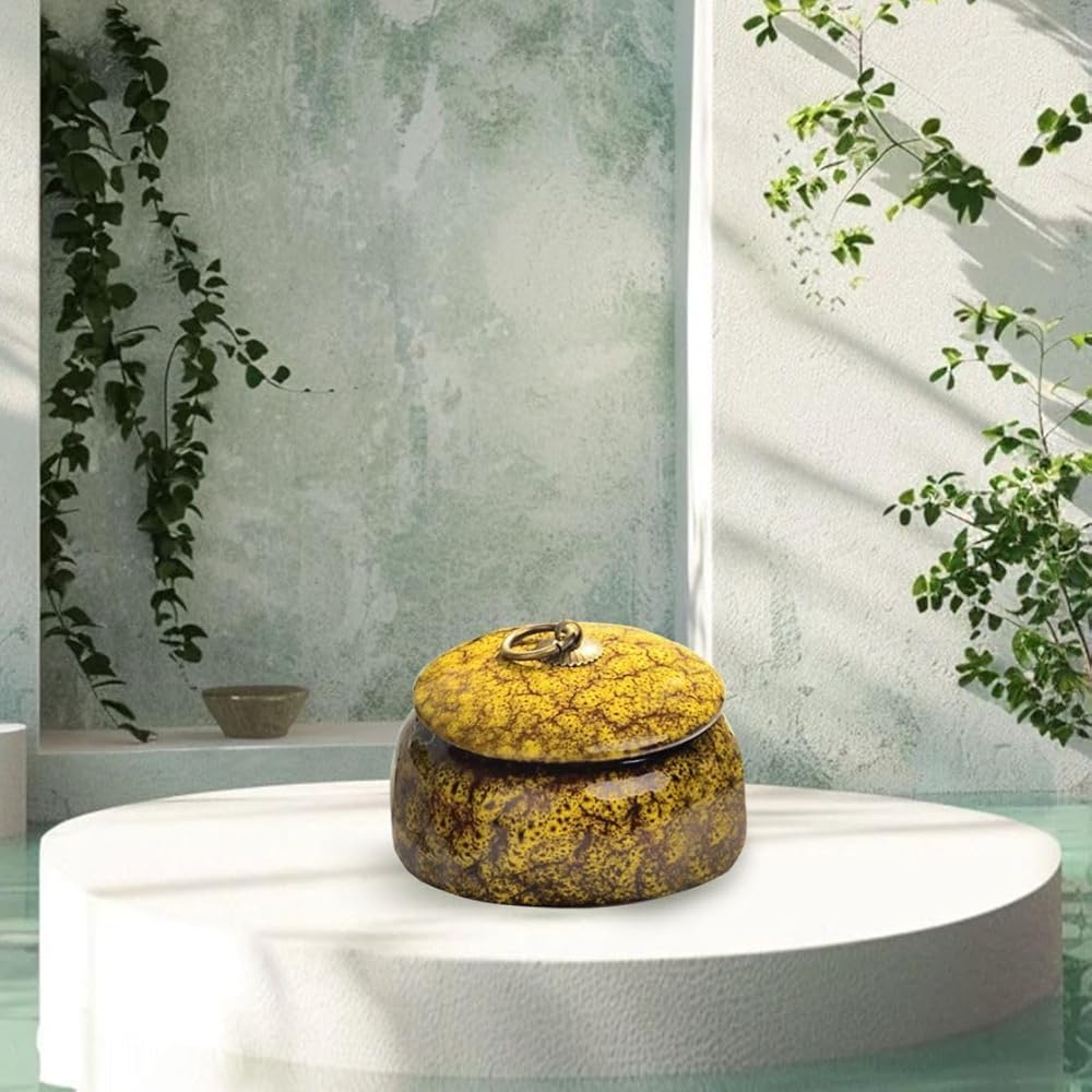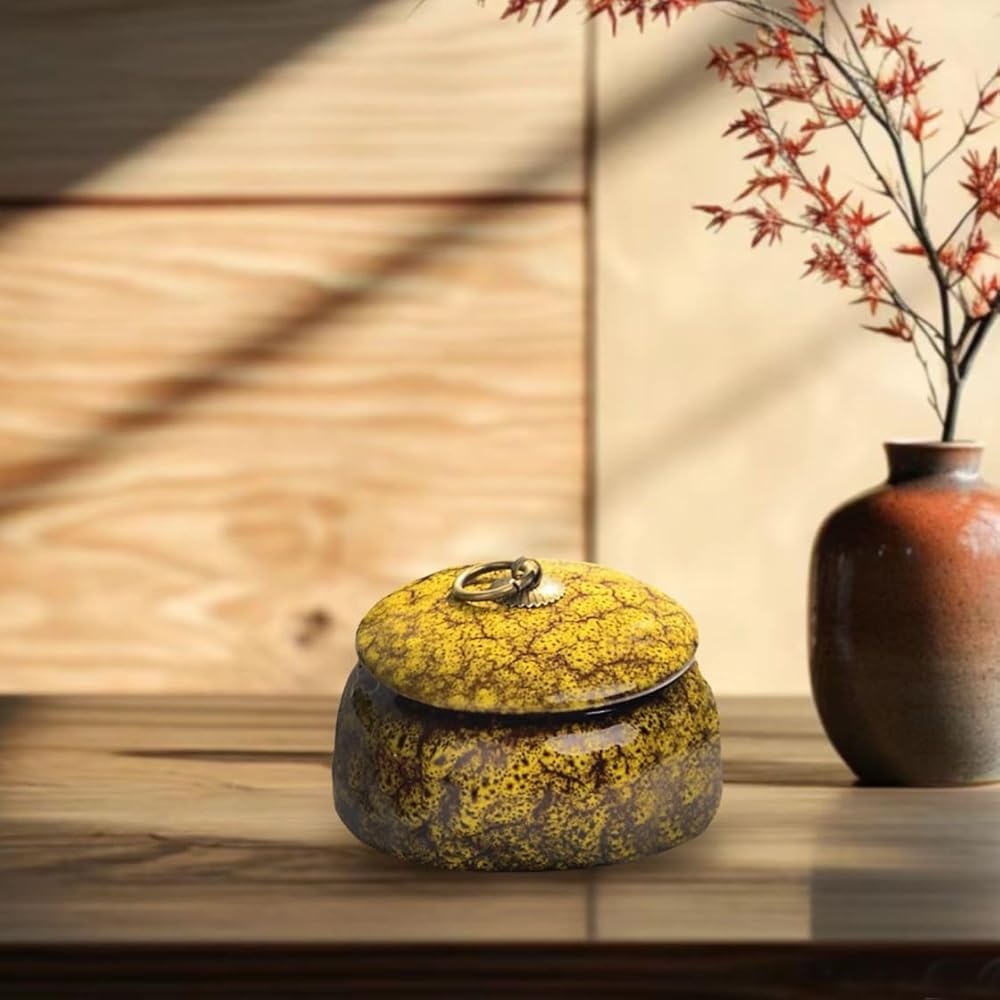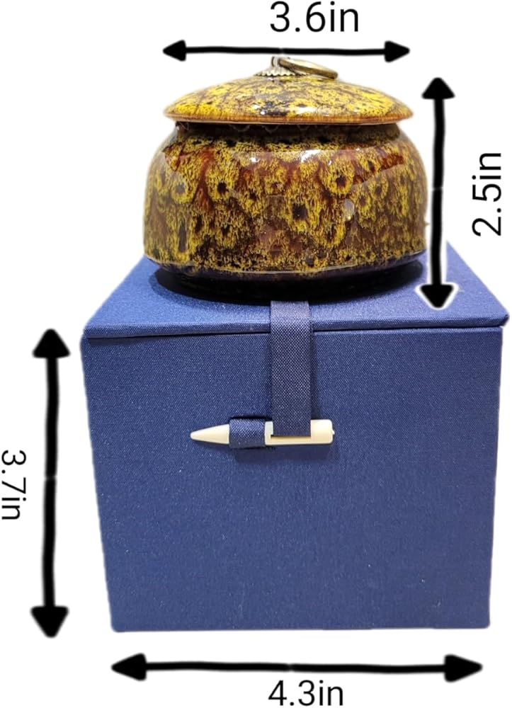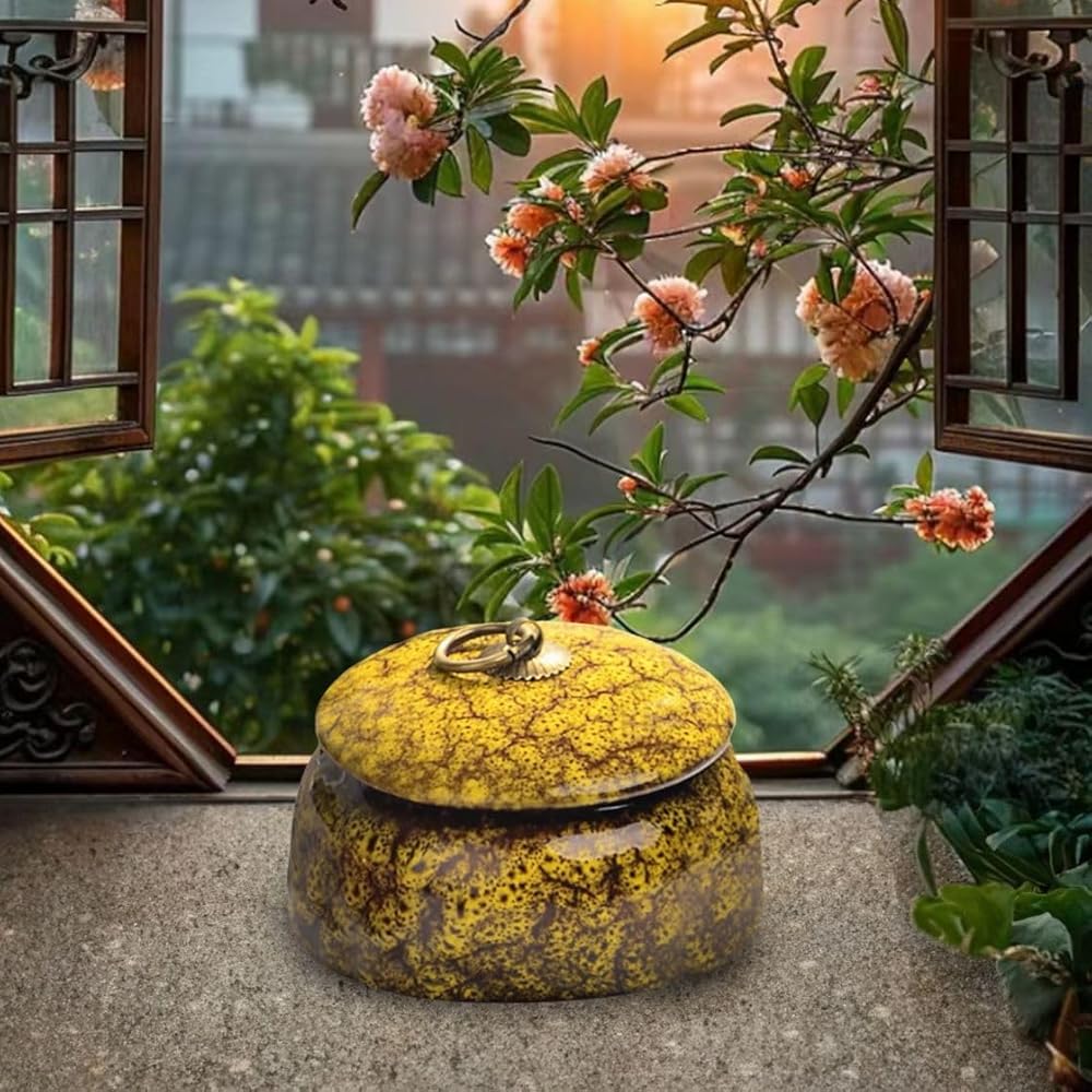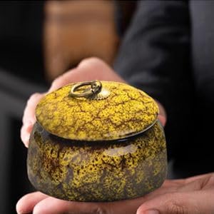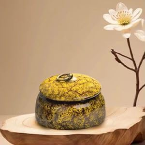 وعاء سيراميك عالي الجودة: مصنوع يدويًا من طين البورسلين الطبيعي، قد تكون هناك فقاعات صغيرة أو بقع سوداء، وهي ظاهرة عملية طبيعية ولن تؤثر على المظهر العام. يجب توخي الحذر عند التعامل مع الجرار الخزفية الجنائزية لتجنب التأثير العنيف