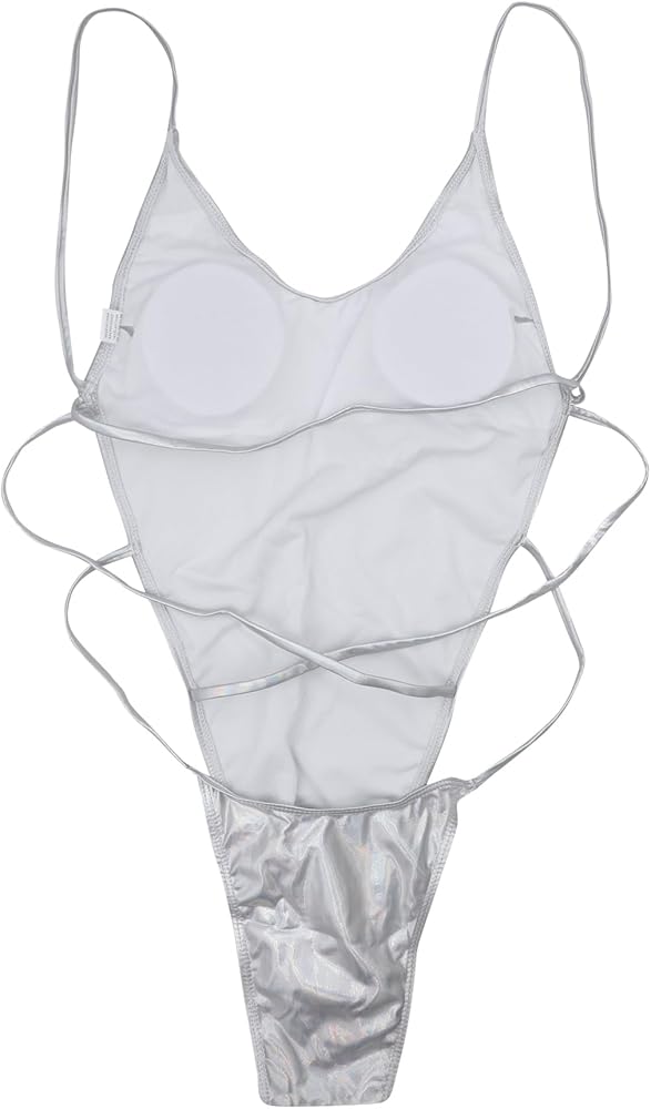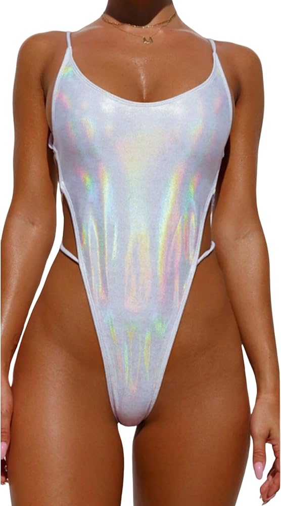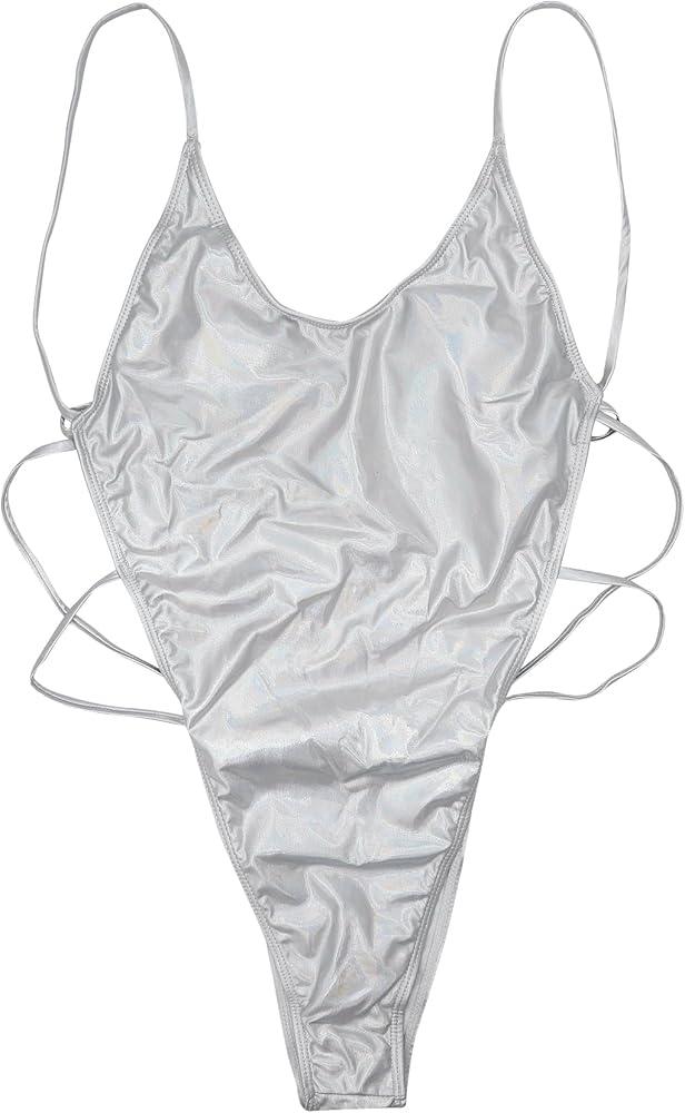 JUMISEE Women's Silver Metallic One Piece Swimsuit Sexy Strappy Backless High Cut Bathing Suit Rave Festival Outfit