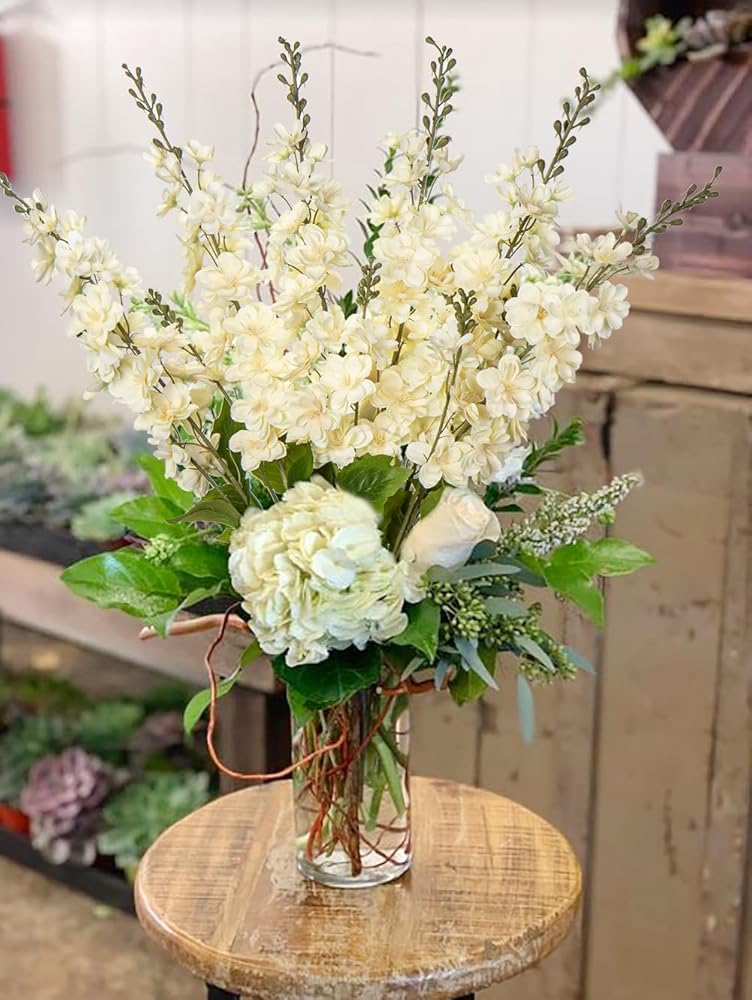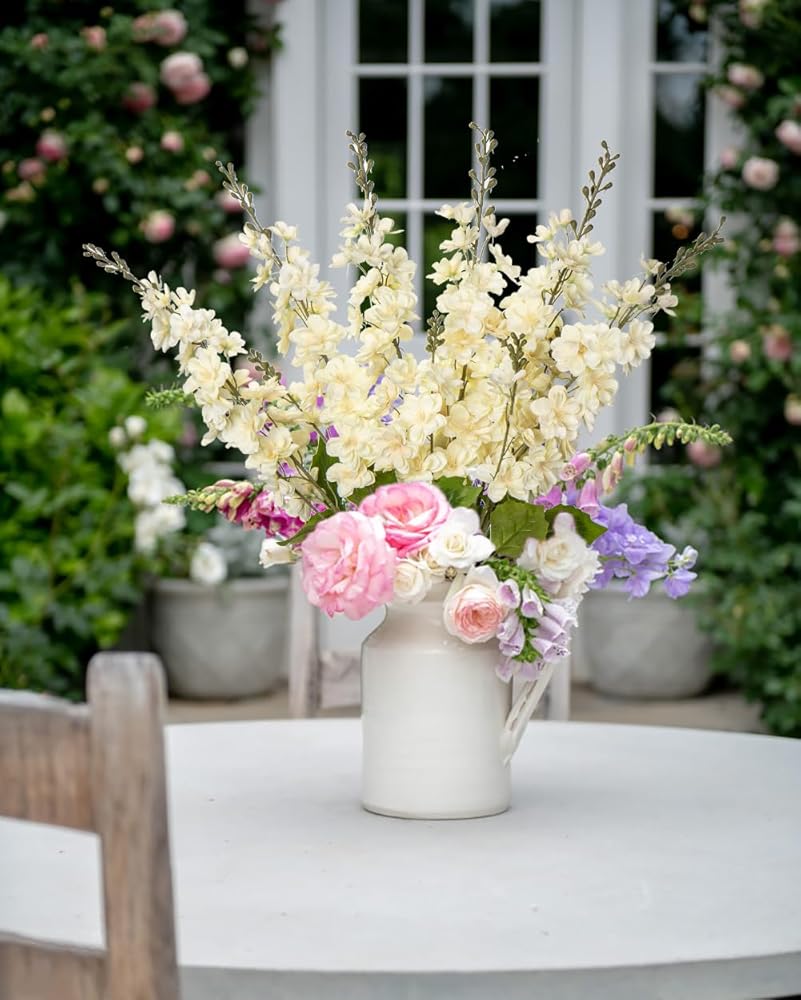 Fake flower bouquet never fade, will not wilt and seasonal restrictions, richer colors, fuller shapes, no maintenance, lasts a long time, a good choice for people who like silk larkspur but don't have time to take care of them.