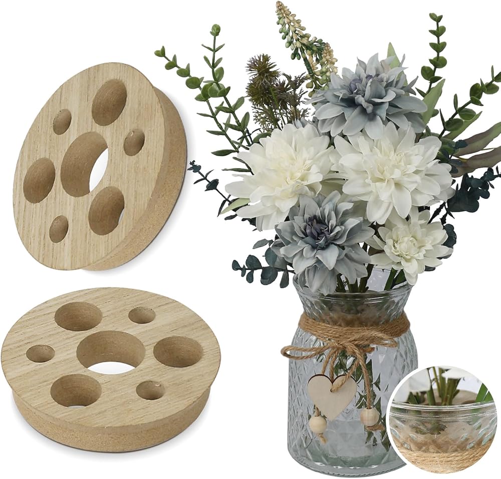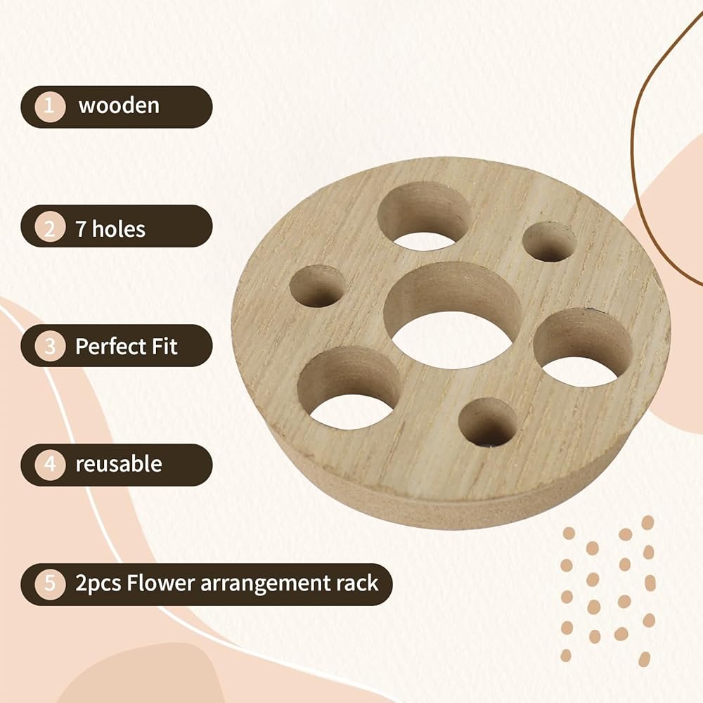 Thoughtful Design: Wooden flower stem holder are distributed with holes of different sizes, and you only need to insert flower stems of different sizes into the holes to achieve good decorative effects,and make the flowers look fuller