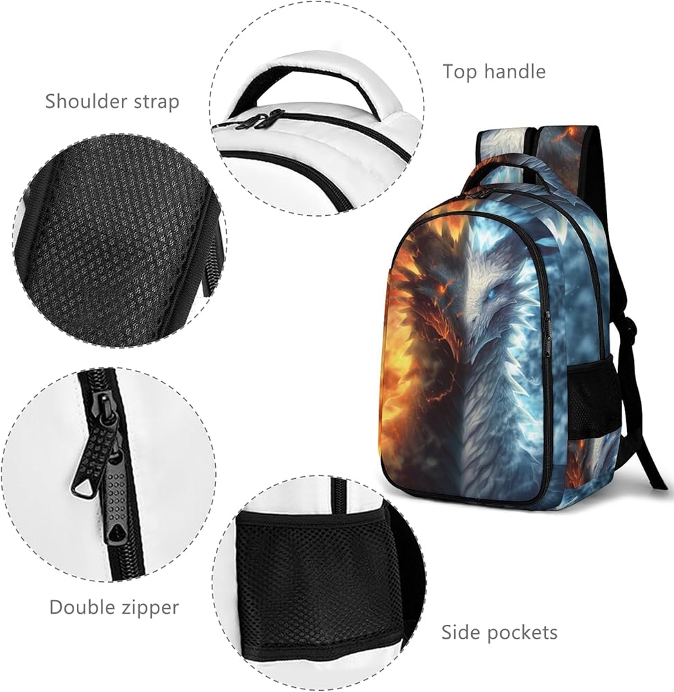 حقيبة ظهر للأطفال للأولاد على شكل تنين حقيبة ظهر مدرسية على شكل تنين الجليد والنار، حقيبة ظهر تنين للأولاد والبنات، حقيبة ظهر للكمبيوتر المحمول للسفر على شكل حيوانات وحشية للأطفال، مقاس 16.5 بوصة