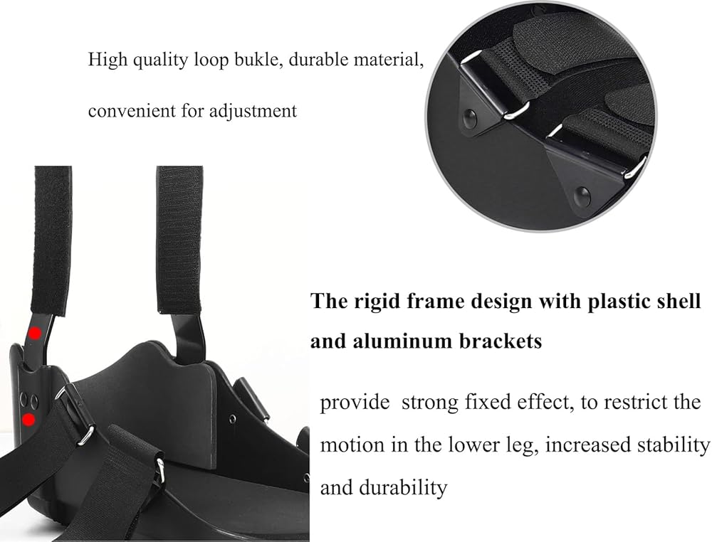 الغلاف البلاستيكي الصلب المزود بدعامة من الألومنيوم على كلا الجانبين يوفر الحماية والصلابة للقدم أو الكاحل أو الجزء السفلي من الساق أو الثلاثة جميعًا، ويمنع الأجزاء المصابة من الحركة ويبقيها في مكانها بشكل آمن من أجل شفاء أكثر فعالية.