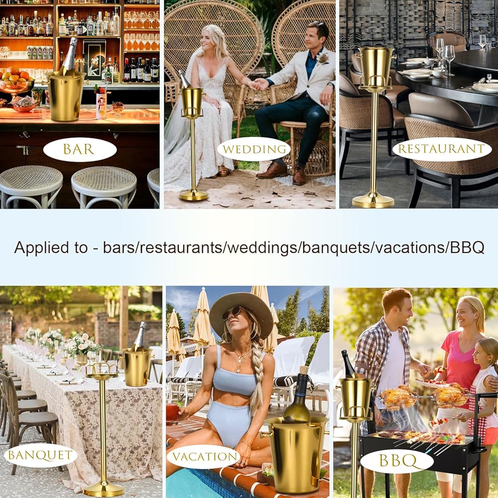 【دعامة قابلة للفصل】لن يشغل دلو الثلج الشمبانيا مع الحامل المساحة على سطح المكتب. بالطبع، يمكنك إزالة مبرد النبيذ الأحمر من حامل دلو الثلج. إن دلو الثلج القائم هذا ليس مناسبًا للاستخدام الداخلي فحسب، بل يمكن أيضًا نقله للاستخدام الخارجي
