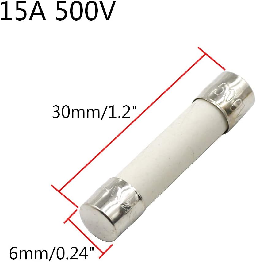 Hxchen 10Pcs 15A 500V Ceramic Fuse 6x30mm Cartridge Fast Blow Tube for Power Strip Experiment Circuit Appliance Repair