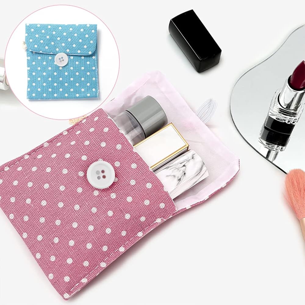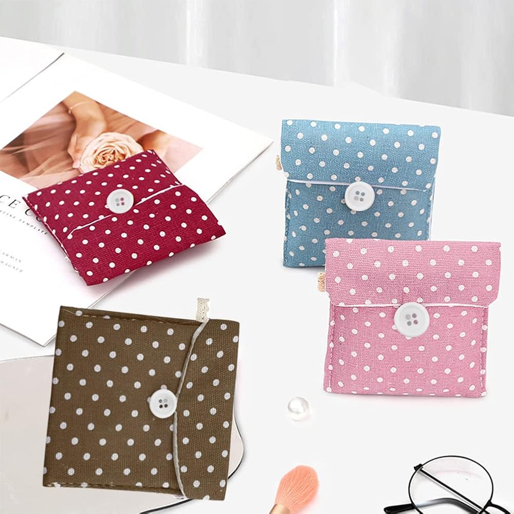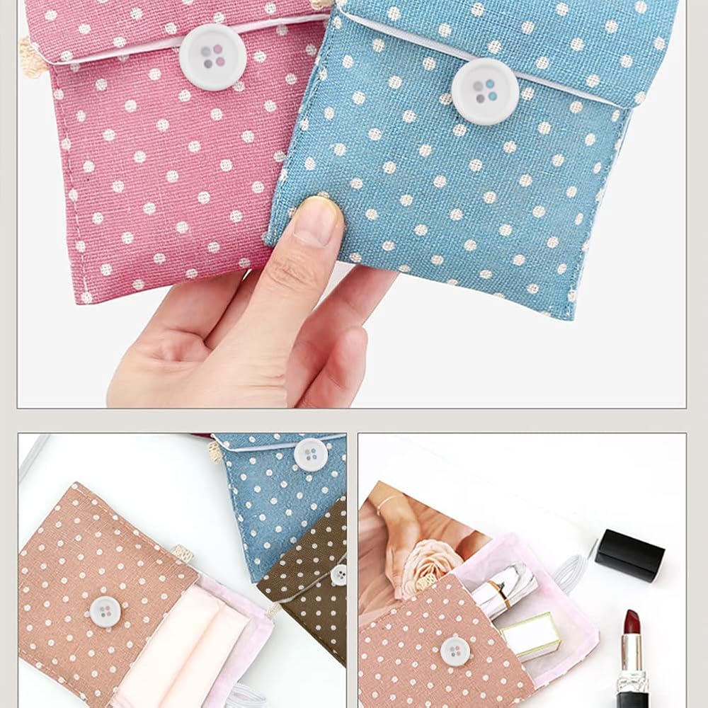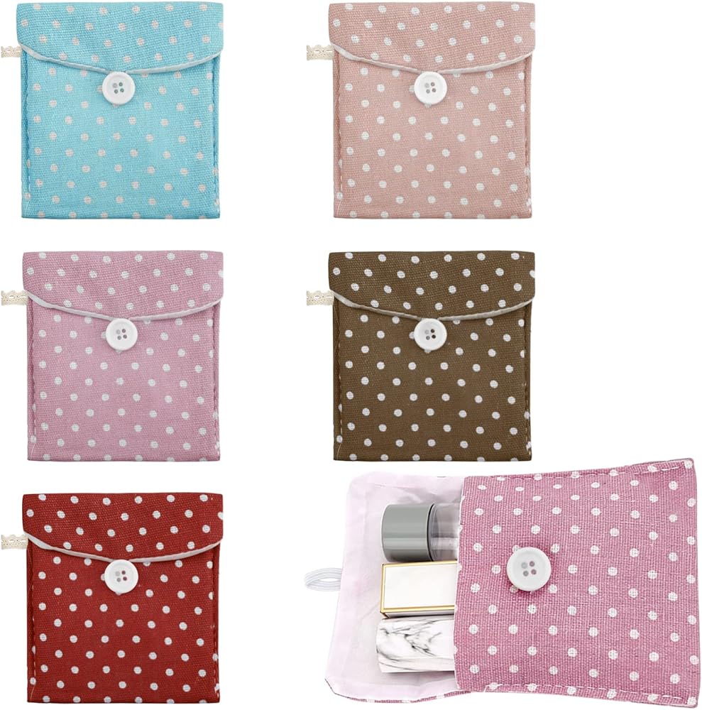 5 Pack Polka Dot Sanitary Napkins Bag Portable Travel Sanitary Pad Cute Polka Dot Pattern Mini Cotton Storage Pouch Cosmetics Organizer for Women and Girls (5 Colors)