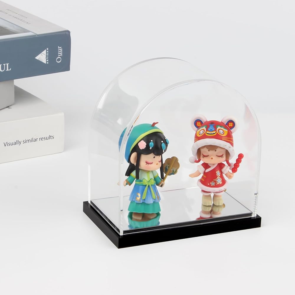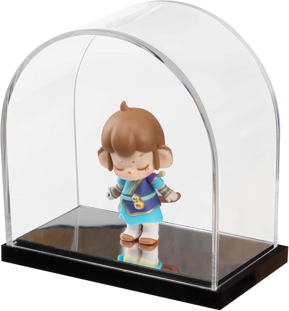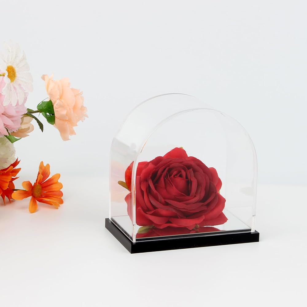 صناديق قوس أكريليك معكوسة مع قاعدة سوداء للعرض، وأشكال عرض تخزين شفافة، وحقيبة عرض دعائم الألعاب، وحاويات تزيين الزهور على سطح الطاولة لتنظيم المقتنيات