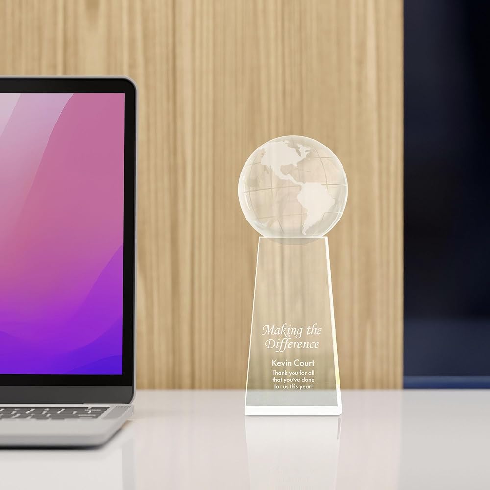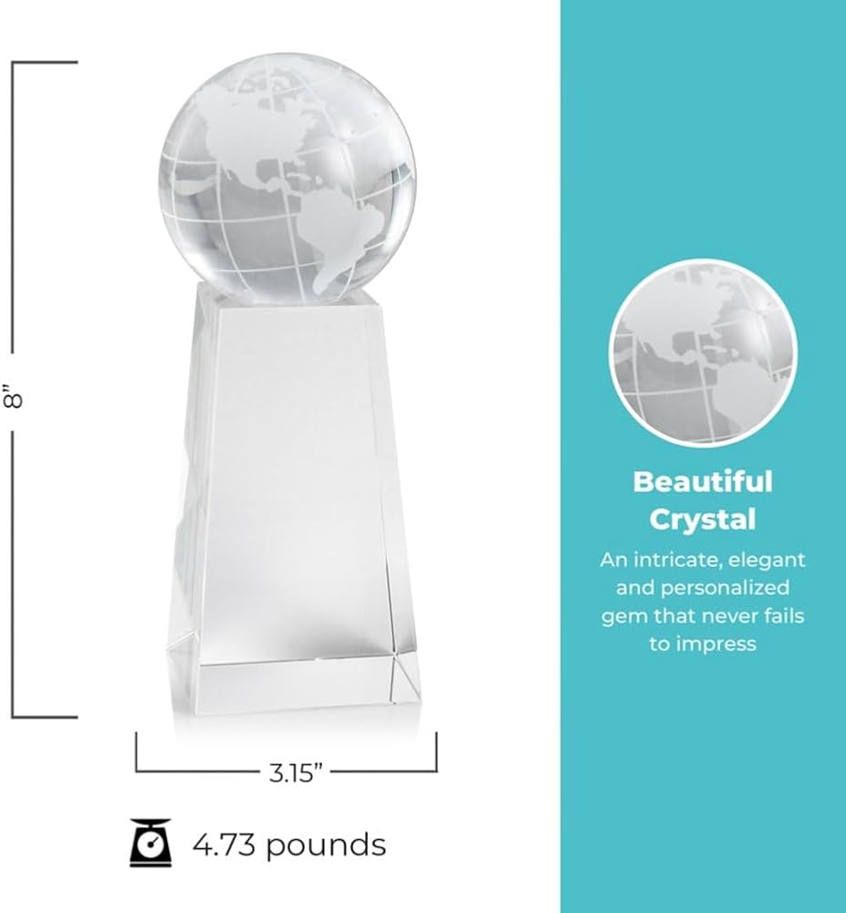 - كأس كريستال تنفيذي مكون من قطعتين مع كرة أرضية فخمة بقطر 3 بوصات فوق قاعدة مستطيلة.