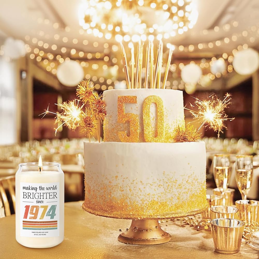 هدايا عيد الميلاد الخمسين لها، له - هدايا عمرها 50 عامًا للنساء والرجال - زينة عيد الميلاد الخمسين - هدايا عيد ميلاد 1974 للأصدقاء، الابنة، الأخت، 14 أونصة رائعة للذكرى الخمسين، شمعة عيد ميلاد