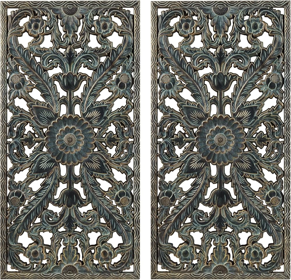 Complete your home decor with the Madison Park Botanical Wood Panel Carved Wall Panel 2 Piece Set.