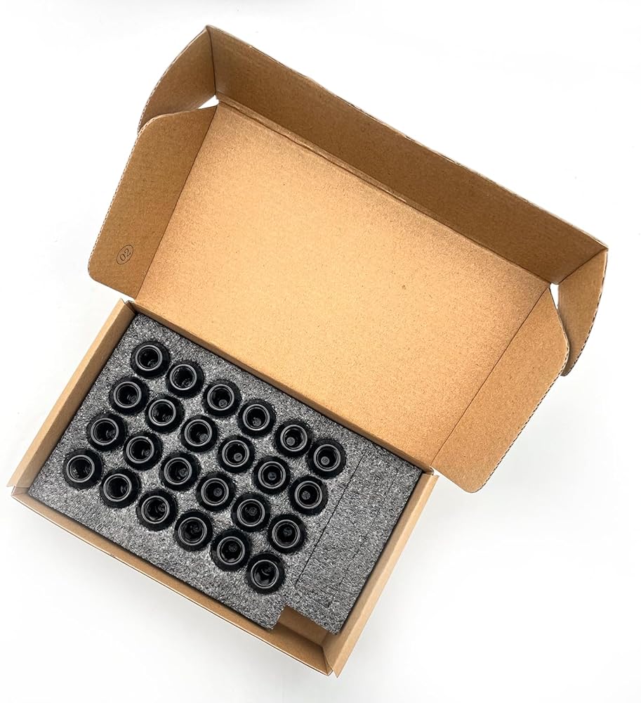 PACKAGE - 24pcs Black aftermarket drive lug nuts separated and protected in padding box