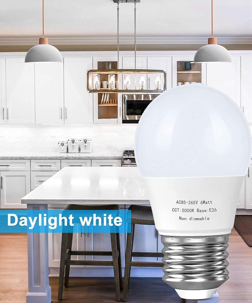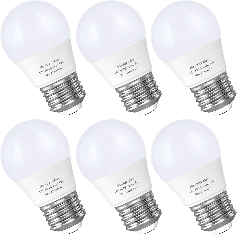 لمبة LED A15، لمبة إضاءة E26 للأجهزة الأساسية، 6 وات (مكافئ 60 وات)، مصابيح إضاءة مروحة السقف، 550 لومن، مصابيح صغيرة، غير قابلة للتعتيم، ضوء نهاري 5000 كلفن، 6 عبوات