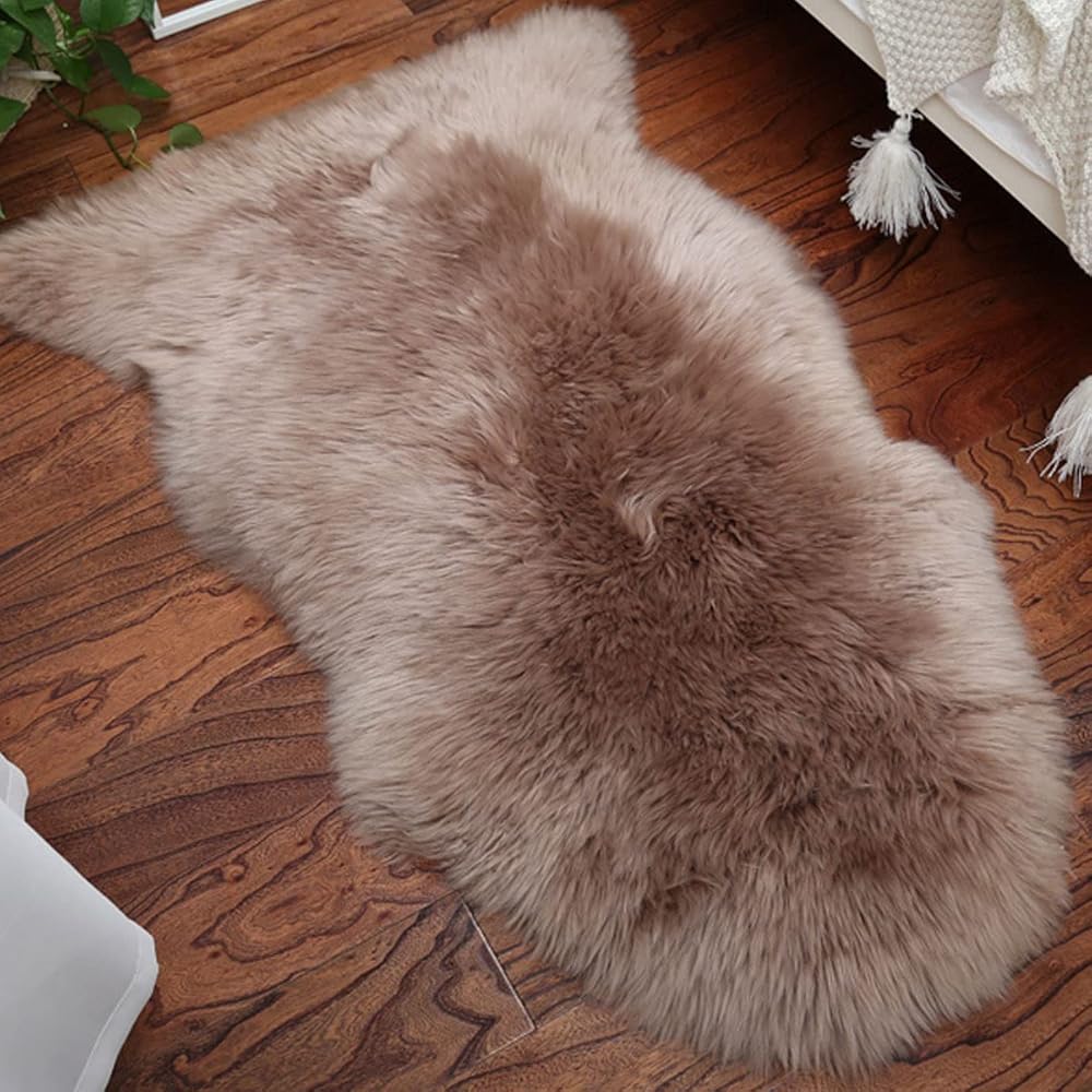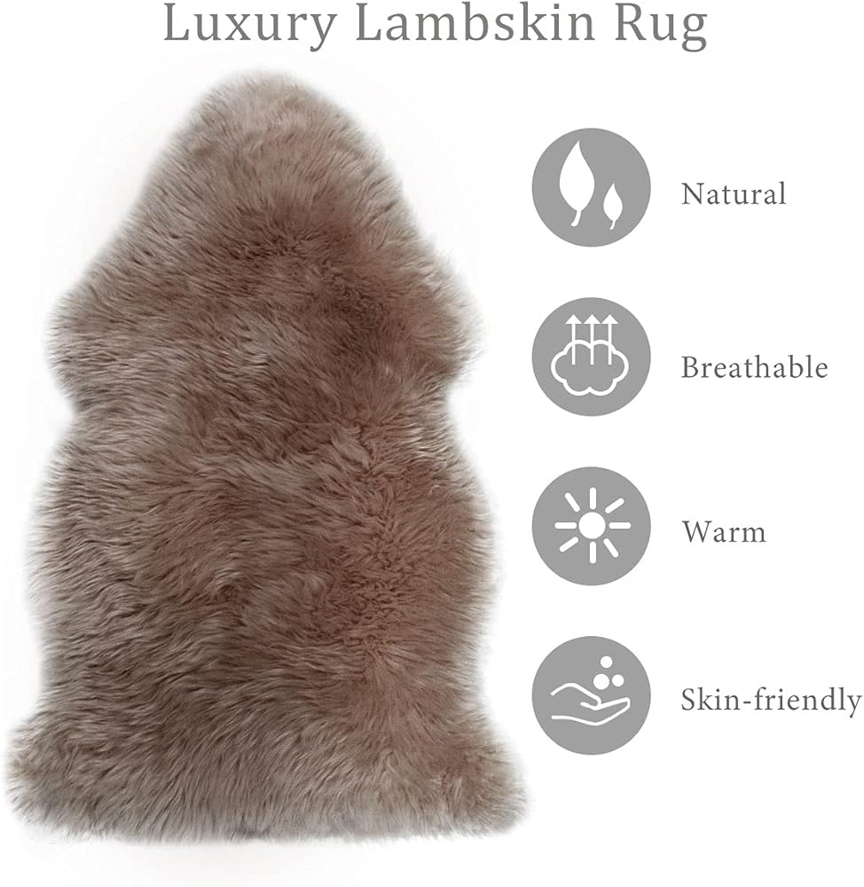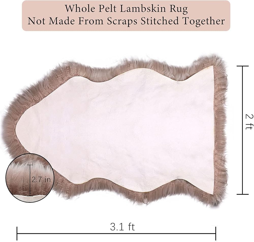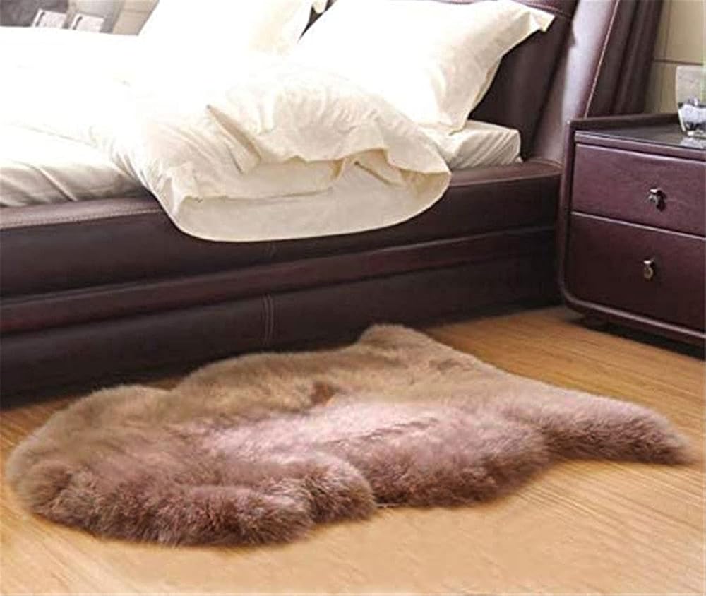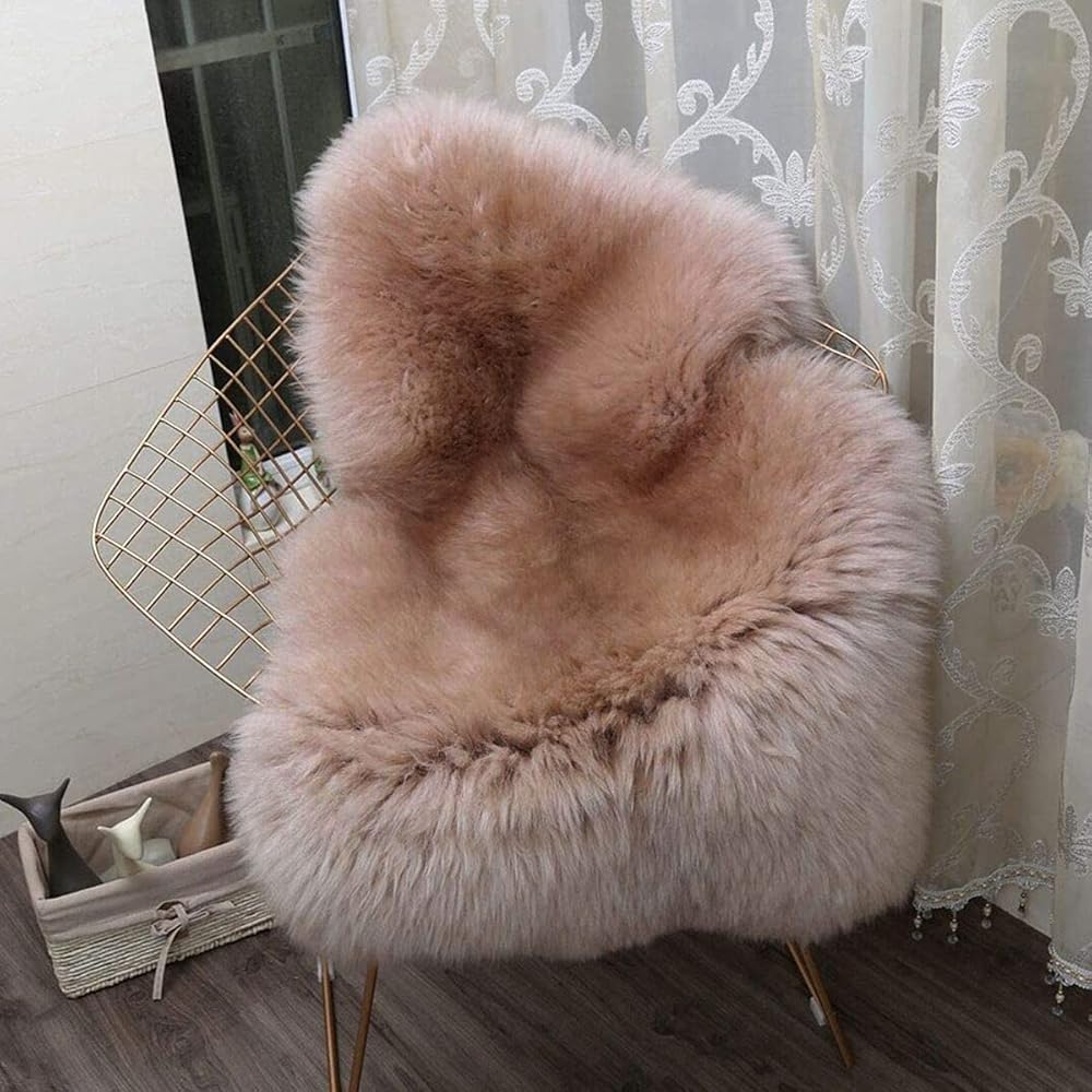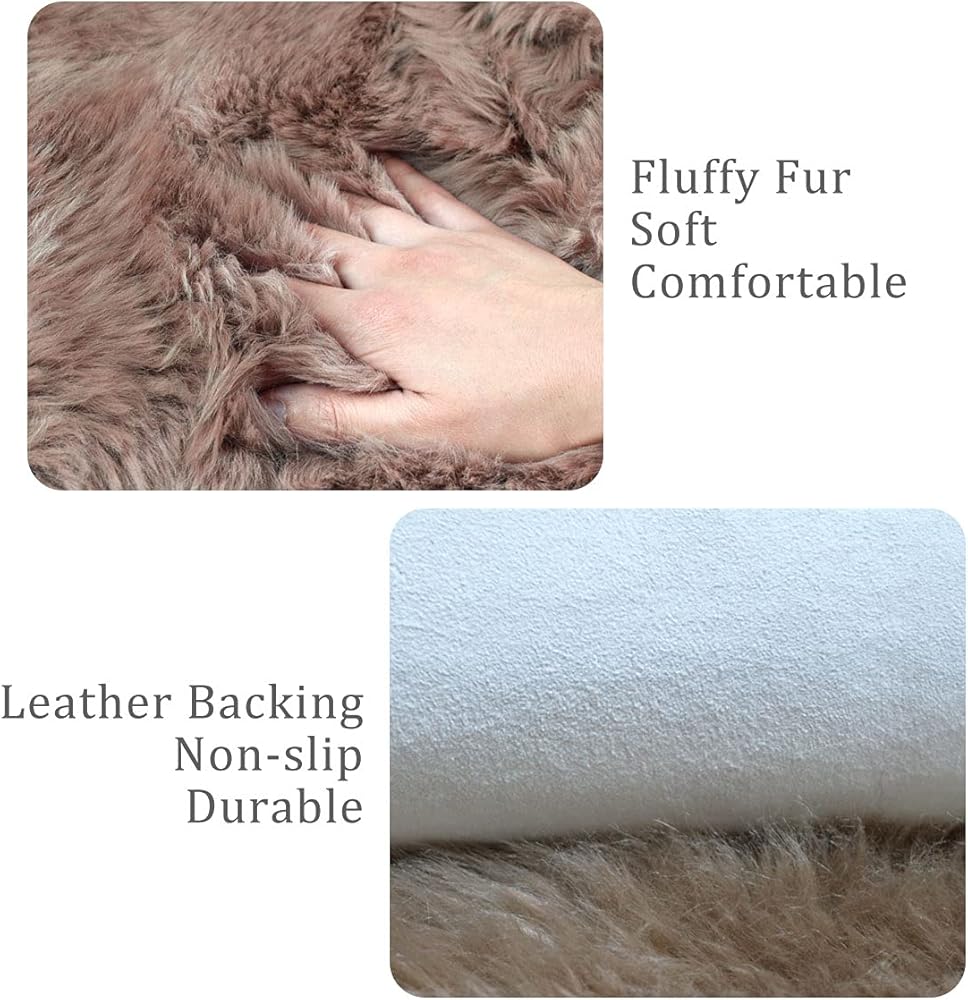 جلد الغنم الفاخر--فرو جلد الغنم النيوزيلندي الطبيعي على الجانب الأمامي، رقيق وناعم؛ ظهر من الجلد الطبيعي، غير قابل للانزلاق ومتين. السجادة الواحدة مصنوعة من جلد الغنم، وليست مصنوعة من قصاصات مخيطة معًا.