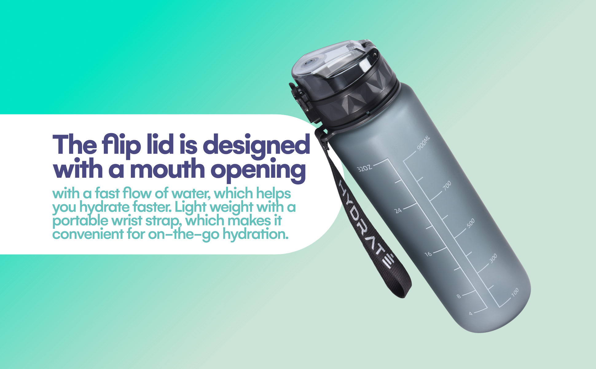 تعتبر زجاجة المياه المحمولة خفيفة الوزن مثالية للترطيب أثناء التنقل، مع حزام معصم لسهولة الحمل وفوهة سريعة التدفق للشرب بكفاءة.