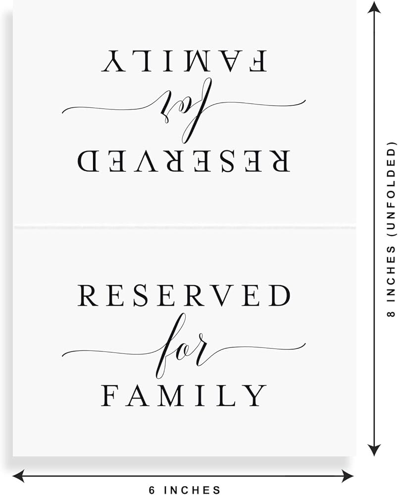 مطوية إلى الكمال: قل وداعًا للعناصر النائبة الواهية! تم تسجيل بطاقات الجلوس المحجوزة لدينا مقاس 4 × 6 مسبقًا لسهولة الطي، مما يضمن حواف واضحة تقف طوال الحدث الخاص بك. بفضل البناء القوي والنص الأنيق، فهي لا توجه الضيوف فحسب، بل تعمل أيضًا على رفع مستوى الديكور الخاص بك بتصميمها البسيط والمتطور.