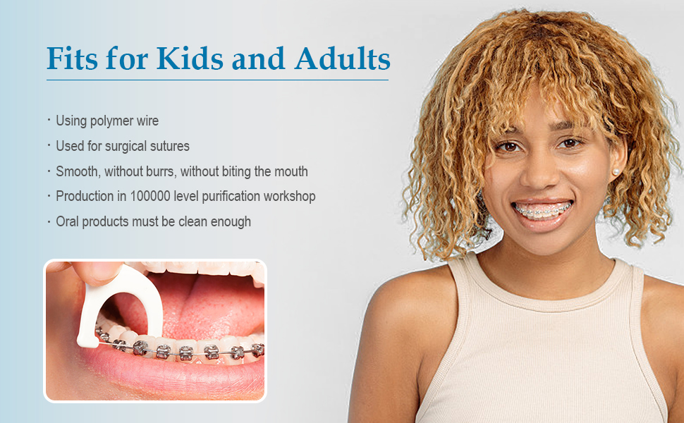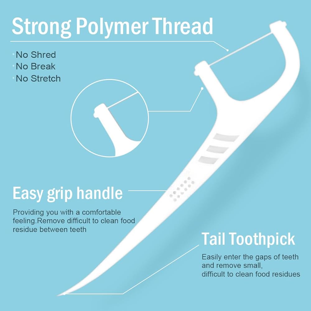 خيط تنظيف الأسنان: هذا الخيط المصمم بعناية لن يتمدد أو يتقطع أو ينكسر، مما يجعله الأداة المثالية لإزالة بقايا الطعام المتبقية والحفاظ على اللثة نظيفة وصحية.