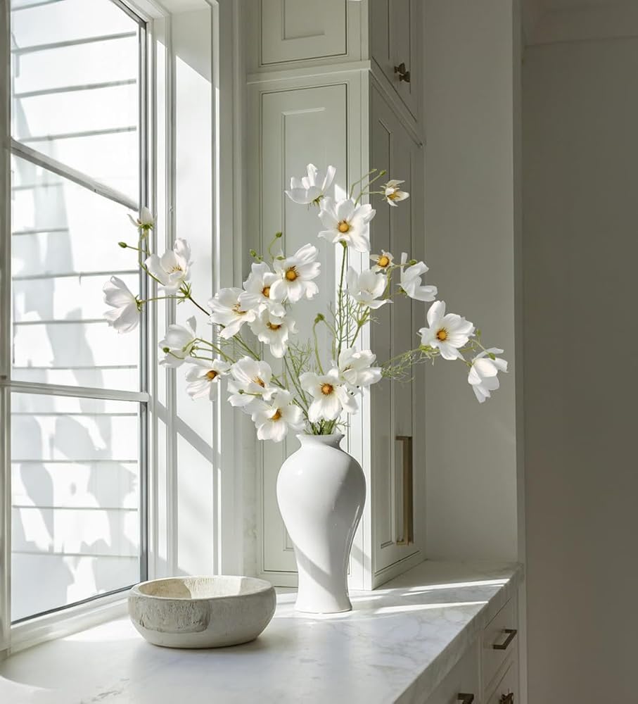 واقعية ومتعددة الاستخدامات: هذه الزهور الصناعية البيضاء مقاس 23 بوصة مصنوعة من الحرير عالي الجودة، مع كل زهرة مصنوعة يدويًا للحصول على تفاصيل دقيقة ومظهر واقعي للغاية. إنها تبدو وكأنها زهور حقيقية، مما يجعلها مثالية لمجموعة متنوعة من المناسبات.