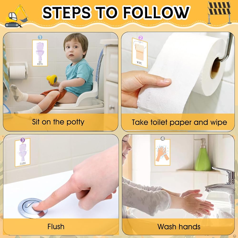 【تصميم ممتع】مخططات التدريب على استخدام المرحاض لدينا هي موضوعات بناء وأنماط مختلفة يمكن أن تجذب انتباه الطفل، وتحول وقت استخدام المرحاض إلى لعبة، مما يسمح له باتباع الخطوات للوصول إلى أهدافه في الوقت المحدد، وكسب المكافآت، وتحقيق استقلالية المرحاض بسرعة.