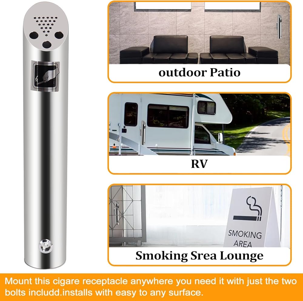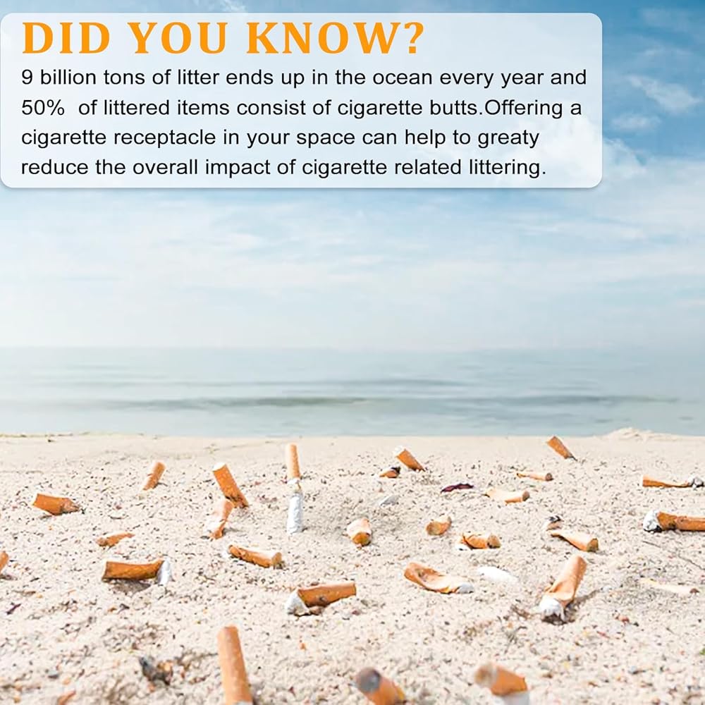 【REDUCE ODOR】The cigarette disposal receptacle hides all the discarded cigarette butts, leaving a clean looking area and helps reduce the smell. At the same time, the outdoor ashtray can reduce the harm and damage to the environment, and reduces the probability of fire caused by cigarette butts.