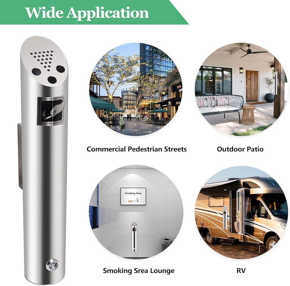 【WIDELY USED】Wall mounted outdoor cigarette ashtray perfect for hotels, RVs, shopping malls, balcony, hotels, parks, commercial pedestrian streets, entertainment venues and various environmental protection places. installing wall ashtrays keeps public areas clean and tidy without odor.