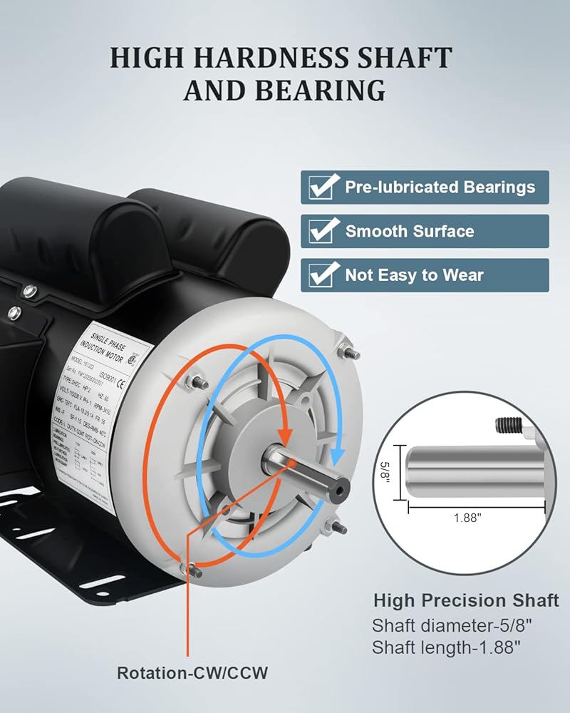 🔧مادة السكن: المحرك أحادي الطور مصنوع من غلاف فولاذي ملفوف. اعتماد نظام العمل المستمر S1، آمن ومتين، عمر خدمة طويل، INS - F، الدوران - CW/CCW، قطر العمود - 5/8، طول العمود - 1.88.
